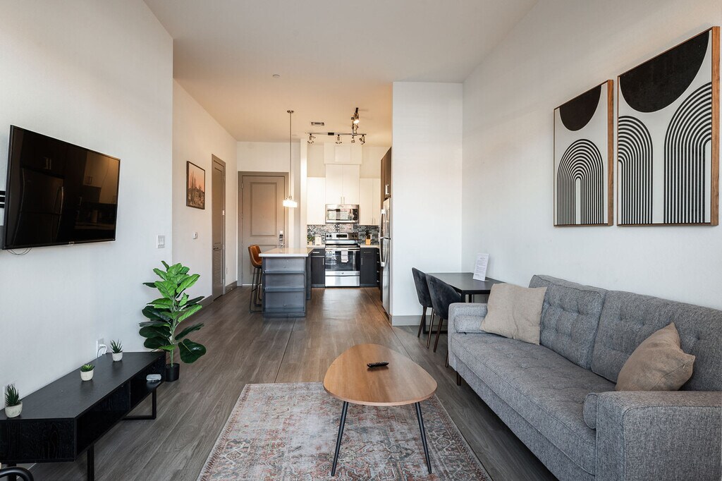 Welcome to this newly built Tempe condo on Town Lake, centrally located near the river, park, and watersports, making it perfect for leisure, spring training, and business travelers. After exploring the greater Phoenix, Tempe, and Scottsdale area, relax by taking a dip in the pool or jacuzzi and enjoy a night by the fire pit. This cozy apartment is ideal for a family, group of friends, or business travelers, offering all the amenities necessary for a comfortable stay. Enjoy stunning lakefront views from the club room, a luxury fitness center, pool with spa cabanas, and a stylish business lounge. The apartment features quartz countertops, stainless steel appliances, a fully equipped kitchen, 100mbps+ internet, modern decor, a Smart TV with streaming apps, a washer/dryer, and complimentary coffee. Free parking is available on a first-come, first-served basis. Garage parking is available for $5 per day if the free surface lot is full or if you desire garage parking. A pet fee ranging from $100 to $300, based on stay length, is applicable for guests traveling with pets. Mid-stay cleanings, early check-in, and late checkout are available for an additional fee. Located on Town Lake River in Tempe, Arizona, near the Mill Avenue District, a local hotspot for dining, shopping, and entertainment. Just 11 miles from Phoenix and 4 miles from Scottsdale, Tempe offers beautifully landscaped parks, botanical gardens, and wildlife preserves like the Hayden Butte Preserve. Enjoy proximity to the Phoenix Zoo, Scottsdale Civic Center, Tempe Diablo Stadium, and Kiwanis Park. The property is smoke-free, and any sign of smoking may result in immediate termination and recovery fees starting at $500. Quiet hours are from 9 PM to 8 AM, and the home is monitored with decibel sensors to ensure compliance. Check-in is at 4 PM and check-out is at 11 AM, with a $75 per hour late fee. A $200 penalty applies for removing smoke detectors or losing key fobs. No weapons or firearms are allowed, and violators will be reported to the police. The unit is equipped with a smart lock for hassle-free and secure entry using a personalized access code. Includes a stylishly appointed business lounge with 100mbps+ internet, making it ideal for remote work.