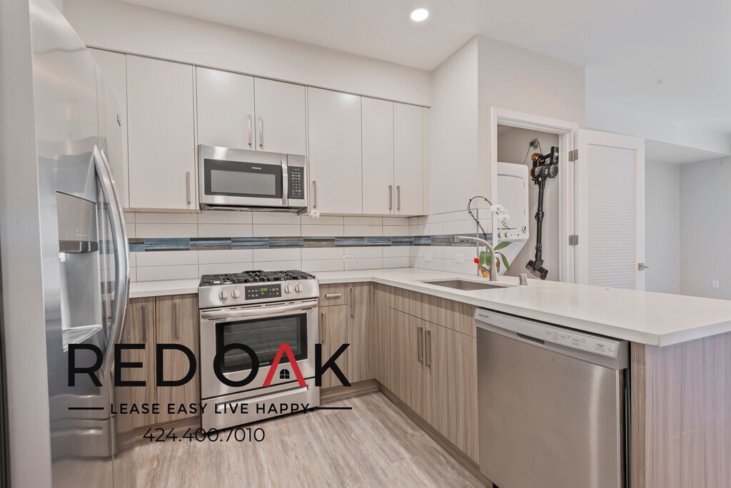 Gorgeous Two Bedroom with Sunlit Spaces, Private Balcony, Designer Selected Fixtures, Appliances, Rooftop Deck, Gym, In-Unit W/D and Included Parking ~ In North Hollywood! Home Highlights: ~ Stylish Living: Spacious rooms, hardwood-style floors, and designer-selected lighting. ~ Naturally Lit: Windows fill the space with natural sunlight. ~ Balcony: Relax or entertain in your outdoor space. ~ Added Privacy: Adjustable blinds provide comfort and seclusion. ~ Climate Control: Central heat and A/C keep you comfortable. ~ Modern Kitchen: Granite counters, breakfast bar, tile backsplash & stainless steel appliances. ~ Relaxing Bedrooms: Sunny windows and ample closets. ~ Elegant Baths: Modern fixtures, soaking tubs, and ample vanity storage. ~ In-Unit Laundry: Washer and dryer for personal use. ~ Parking: A space for your vehicle is included. ~ Approved Pets Welcome: Minimal deposit and pet rent (35lbs max). ~ Community Perks: Rooftop deck, courtyard, gym, and recycling. ~ Convenient Living: Close to BV Shopping Center, Noho Commons, and easy access to Bob Hope and LAX for stress-free commuting. Come home to luxury living in North Hollywood! Available for an immediate move-in. Call to schedule a viewing today! LEASE TERMS: One Year Lease Photos may not reflect the exact available unit. Availability is not guaranteed—please verify all details. Square Footage is approximate. Showings may not be 1-on-1. Listed pricing and special offers are only valid for new residents. Pricing and availability are subject to change without notice and may vary between similar units. Red Oak does not warrant or represent that image renderings on this website are an accurate representation of every floor plan available at the Property. Floor plans may vary unit by unit and by location at the Property. Please contact the Leasing Office to schedule a tour of the Property and the particular unit you are interested in. Pricing and availability are subject to change at any time. **All applicants receive equal consideration; we follow all Fair Housing laws.*