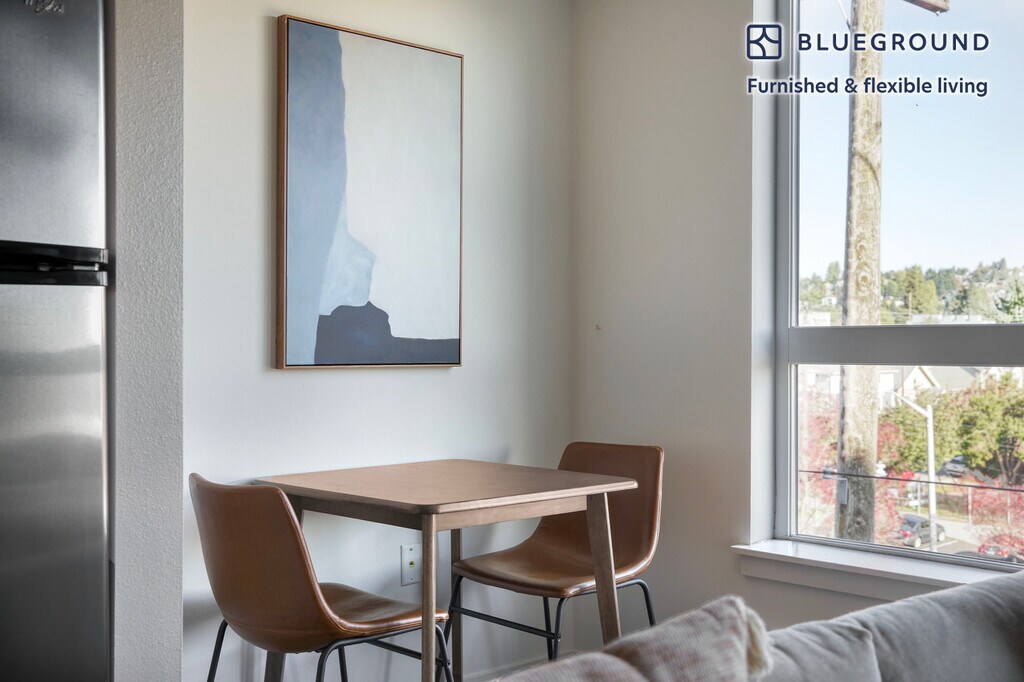 Feel at home wherever you choose to live with Blueground. You’ll love this lovely Ballard furnished studio apartment with its modern decor, fully equipped kitchen, and cheery living room with great views. Ideally located, you’re close to all the best that Seattle has to offer! (ID #SEA641) The advertised rate of $1,370/month is the lowest available price, based on a 1 month(s) and 27 day(s) stay with a move-in date of January 14, 2026. If you’re looking for a 1-year stay, the rate is $1,880/month. Rates vary depending on the duration of stay, season, and other parameters. For exact pricing and additional pricing components, please visit our website and enter your desired move-in and move-out dates. The rate is applicable when billed upfront; it can be higher if billed in multiple payments. Brokers are welcome to reach out. Were you looking for an unfurnished lease? Try Blueground instead and upgrade from unfurnished to furnished living: - Furnished at rates comparable to unfurnished - No setup or furniture costs - save thousands - Move-in ready - save time, just bring your suitcase Designed with you in mind As with any Blueground apartment, you’ll find a thoughtfully designed space complete with beautiful furniture and a fully equipped kitchen in this studio property. And, thanks to our superior quality mattresses, luxury linens, and towels, you can relax knowing you’ll always feel comfortably at home. When you’re ready for some fun, you can take in the Seattle vibes or bring the entertainment to you with the premium wireless speaker or smart TV. This apartment also offers in-apartment laundry. Sleeping arrangements Queen Bed, 63in/160cm Amenities Building amenities unique to this studio apartment include an on-site: - BBQ Area - Dryer - Elevator - Washing machine - Lounge - Parking - Pets allowed - Rooftop BBQ Arrival and ongoing support The entire apartment is yours to enjoy! Throughout your stay, you’ll have access to our Client Experience team through the Blueground App. You can schedule additional cleanings, submit maintenance requests, and view our neighborhood recommendations with just a few taps. We’ll share all details upon confirmation of your stay. Ideally Located This furnished home is situated in Ballard, a hip waterfront neighborhood offering trendy restaurants, shops, breweries, and bars. Ships pass through the Locks, which have become a popular picnic spot. The beach at Golden Gardens Park offers mountain views and cater to sunbathers and volleyball players. There’s also a Nordic Heritage Museum here that displays the area’s Scandinavian roots. There are tons of ways to access the rest of the city from here, for instance, by monorail, streetcar, and bus. Other things to note Building amenities may have an extra cost. This Blueground apartment has flexible lease options, allowing you to book it for one month, a year, or more. Pets are welcome, though weight limits and breed restrictions apply and may incur fees. Parking is offered based on availability and is subject to a fee. We take great pride in ensuring every photo displayed is shot in our own units with our actual furnishings. That said, we regularly refresh our decor and furniture arrangement, which may differ from what’s pictured. [SI]