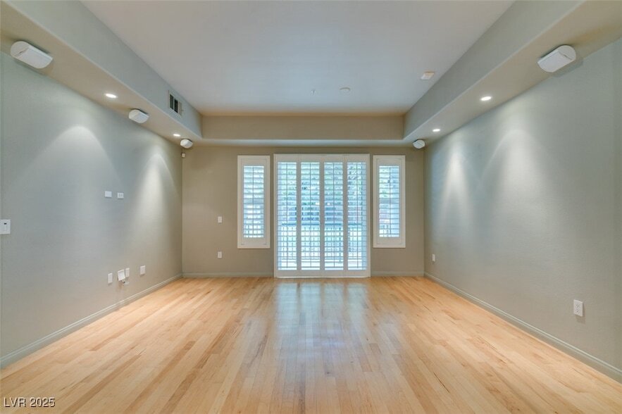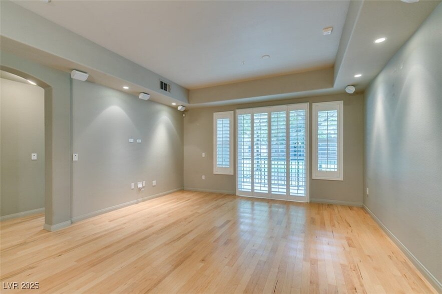 Highly desirable 1st floor condo with numerous upgrades including shutters, surround sound, ceiling fans, and more. Experience upscale mid-rise living in this spacious 3-bedroom, 2-bath home at the sought-after Manhattan Condos, a guard-gated community just minutes from the Las Vegas Strip and Allegiant Stadium. The open-concept layout offers high ceilings, abundant natural light, and a modern kitchen with granite countertops, stainless steel appliances, and a breakfast bar perfect for entertaining. The primary suite features a custom walk-in closet and ensuite bath with dual sinks and a soaking tub. Relax on your private balcony with peaceful community views. Enjoy resort-style amenities including sparkling pools, a state-of-the-art fitness center, yoga studio, clubhouse, business center, and lush green spaces. Pet-friendly community with a premium location offering comfort, security, and luxury at an unbeatable value.