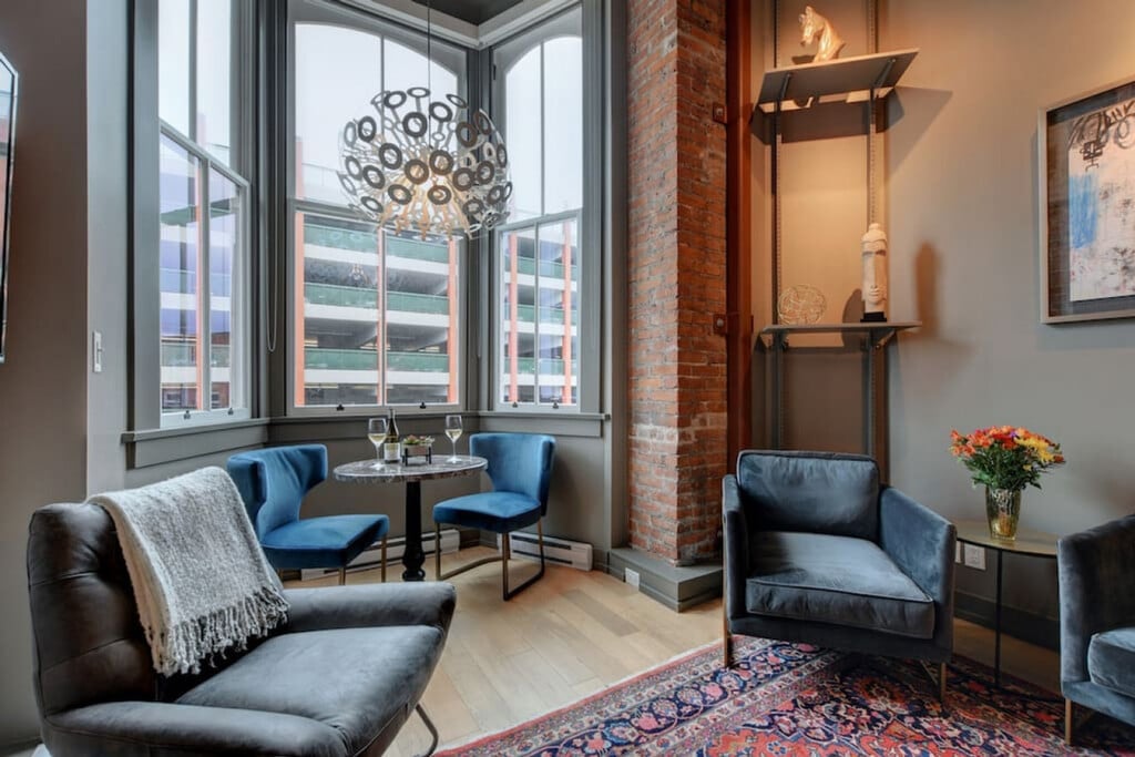 This unique and beautiful loft with sprawling double-height ceilings is centrally located downtown in the beautifully restored Oriental Hotel, a heritage-listed conversion. It contains the original Oriental Hotel sign, the only of its kind in the building. Enjoy access to a shared rooftop patio showcasing views of Downtown, the Inner Harbour, and beyond. This loft is beautifully decorated and features a dining area nestled in the bright bay window offering views up and down Yates Street, plus glimpses of the Inner Harbour. There is also a large ceiling fan which, along with the cross-vented windows, assures year-round comfort. The plush queen bed and fully stocked kitchen and bathroom provide everything you need for a comfortable stay. Entertainment is at your fingertips with a 50" Roku TV with Netflix and high-speed Wi-Fi. Suite does not come with parking, however the parkade offers hourly and daily parking at reasonable rates. Centrally located in a vibrant part of downtown, this loft offers easy access to the best of the city. Ample street parking and a city parkade across the street make it convenient for those with vehicles. Explore the nearby attractions and enjoy the lively atmosphere of the area. Street noise can travel up to the suite from the streets below, so earplugs are provided for all guests. Important house rules include quiet time after 10:00pm. Your health and safety is of the utmost importance during your stay, with professional cleaning staff taking extra precautionary measures including hospital-grade cleaning products after each turnover.