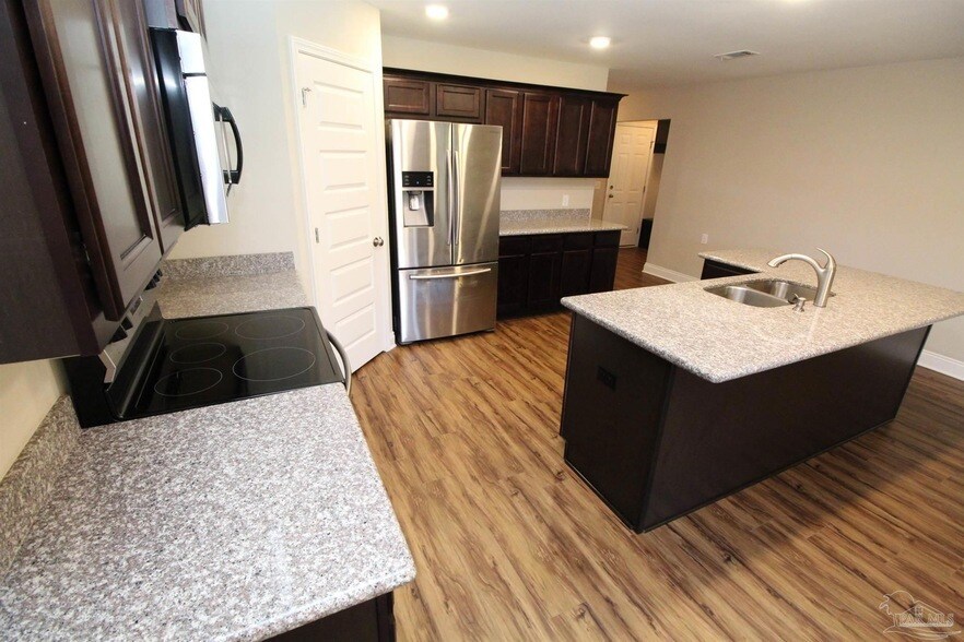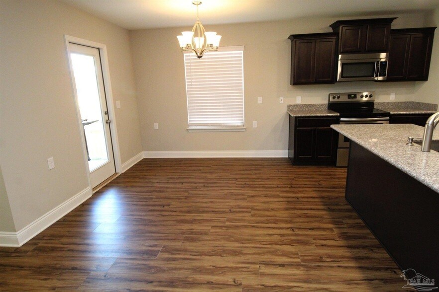 Coming Available 10/17 Gorgeous 3-Bedroom Home in Milton! This spacious brick home in the Bon View subdivision off Avalon Blvd offers nearly 1,700 square feet of living space with an open floor plan, two-car garage, and privacy-fenced backyard. Conveniently located near I-10, Whiting Field, Pace, and Pensacola, this home features wood-look flooring throughout the main living areas, carpet in the bedrooms, and trey ceilings in both the living room and primary suite. The kitchen boasts granite countertops, a large island, stainless steel appliances (refrigerator, built-in microwave, electric stove, and dishwasher), and a pantry, and it overlooks the dining and living areas. The split floor plan provides a spacious primary suite with walk-in closet and a private bathroom with double vanity, shower, and water closet, while two additional bedrooms share a full bath with a tub/shower combo. An inside laundry room includes a washer and dryer in as-is condition, and a covered patio opens to the large fenced backyard. Up to two dogs may be considered with owner approval and a $250 non-refundable pet fee per pet (no cats). Residents are required to have renter liability insurance, which can be added for $11.95/month, or you may opt into the Resident Benefits Package (RBP) for $45/month, which includes renter liability insurance, HVAC air filter delivery, and on-demand pest control. This property is currently occupied please do not disturb the residents.