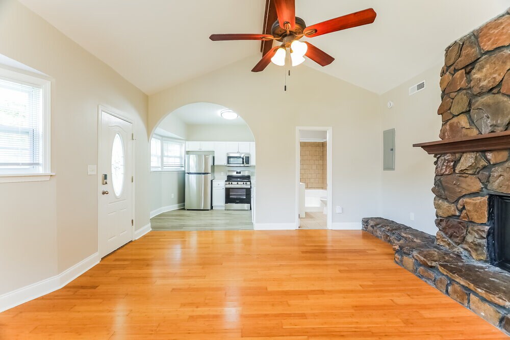 Please note, our homes are available on a first-come, first-serve basis and are not reserved until the lease is signed by all applicants and security deposits are collected. This home features Progress Smart Home - Progress Residential's smart home app, which allows you to control the home securely from any of your devices. Learn more at Want to tour on your own? Click the “Self Tour” button on this home’s listing or call to register for a self-guided showing at a time that works best for you. Welcome to this two-bedroom and single-bathroom rental home in Birmingham, AL. The living room stands out with its hardwood flooring and a charming front-facing bay window. An exposed beam adds a touch of style on the vaulted ceiling, and there's lots of windows to bring in an abundance of natural light. An arched doorway leads into the kitchen. You'll love the long white countertops and all-white cabinetry, stainless steel appliances, and the convenient above-the-range microwave. Step into the primary bedroom to find overhead lighting and a large closet that provides plenty of room for storage. Outside, you'll have plenty of space to relax on the huge wooden deck. This one-story home also includes smart home functionality and central HVAC. Apply today and make this home yours.