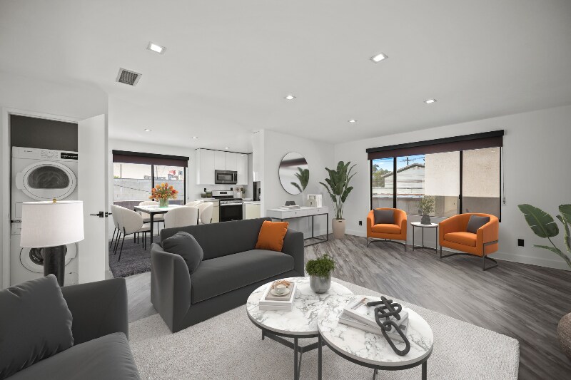 Property Id: 2355819 Midcentury Modern Architecture | Minutes to the Netflix, Sunset Bower Studios, and Sunset Gower Studios | Sparkling White Stone Quartz Countertops with Self-closing Cabinetry | Los Angeles Re-Defining Modern Living | In-unit Washer & Dryer Drake Real Estate Group | Welcomes You Home | Schedule Your Private Viewing Today | INQUIRIES | TEXT/ CALL : EMAIL : CURRENT AVAILABILITIES: Carefully restored and designed by a renowned LA designer, these 1960s modern luxury rental homes feature keyless entry door locks to spacious one and two-bedroom floor plans with newly renovated kitchen and bathrooms. The kitchen boasts sparkling white stone quartz countertops with brand new self-closing cabinetry and high-end stainless-steel refrigerators with matching gas cooktop with oven and microwave. iRing doorbells with a smart home video security camera are also included as well as a stackable washer and dryer. Bathrooms feature porcelain tiled bath tubs and glass shower doors. Each rental home also includes central A/C cooling and heating with recessed lights with luxury style cellular shade window blinds and distressed wood plank floors. | EXTERIOR | - Newly Modernized Façade - City Approved & Completed Earthquake Seismic Retrofit - Keyless Electronic Entry | INTERIOR | - Cellular Shade Window Blinds - Spacious Designer Floor Plan - Vinyl Plank Flooring | KITCHEN | - Modern Designer Cabinetry - Quartz Countertops - Stainless-Steel Appliances - Refrigerator - Range w/ Oven - Microwave - Open Kitchen Space Layout | BATH | - Tiled Shower and Bath - Glass Shower Doors - Oversized Vanity Mirror | AMENITIES | Washer & Dryer (in unit) - Assigned Parking - A/C Units