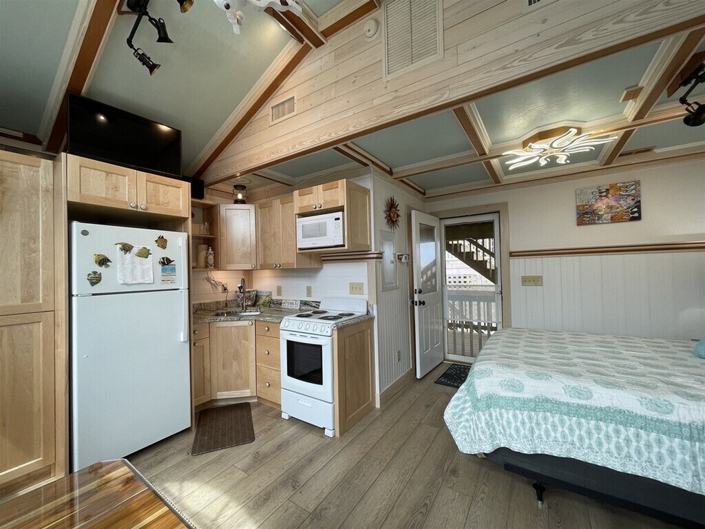 Welcome to Gypsea Sol, a charming 1-bedroom efficiency cabana located on Hwy 12 in Hatteras. This delightful retreat offers a serene escape with its cozy interiors and a deck perfect for watching the sunrise and sunset. Ideal for a maximum of two guests, this cabana ensures a peaceful stay with no pets and no smoking allowed. The cabana features a comfortable queen bed, perfect for unwinding after a day at the beach. The fully stocked kitchen allows you to prepare delicious meals, or you can take advantage of the numerous grills available in the courtyard. Enjoy the convenience of a full stove, refrigerator, cable TV, wireless internet, and central heat/air, all designed to meet your vacation needs. Linens are not provided, so guests can bring their own sheets, pillowcases, bath towels, and bath cloths, or rent them from local services such as Money's Worth or Ocean Atlantic Rentals. Situated on Hwy 12 in Hatteras, this cabana offers easy access to the beautiful beaches and local attractions. Whether you're exploring the area or simply enjoying the tranquility of your surroundings, you'll find everything you need for a memorable getaway. This cabana accommodates a maximum of two guests and maintains a strict no-pets and no-smoking policy. Linens are not provided, so guests should plan accordingly. [SI]