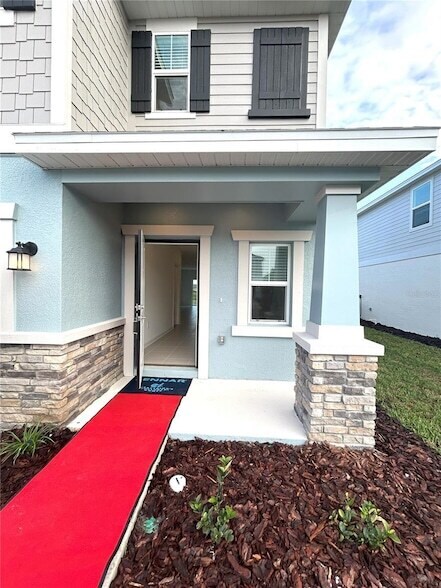Be the first to rent this brand new home. Thoughtfully designed for large or growing families, this spacious two-story home offers comfort, flexibility, and modern living.The first floor boasts an open-concept layout that seamlessly connects the great room, dining area, and kitchen perfect for entertaining or everyday family life. An attached lanai extends the living space outdoors, ideal for relaxing or hosting guests. A private first-floor bedroom provides a quiet retreat for overnight visitors or multi-generational living.Upstairs, a versatile loft serves as a central hub surrounded by four well-appointed secondary bedrooms and a luxurious owner s suite, complete with a spa-inspired bathroom and generous walk-in closet. Whether you're accommodating a full household or planning for the future, this home adapts beautifully to your lifestyle. Many amenities including a beautiful Clubhouse with resort style pool. Dog Park, Playground, fitness center, splash pad, baseball field, basketball court, tennis court, soccer field, pickleball and volleyball. Make this home yours.