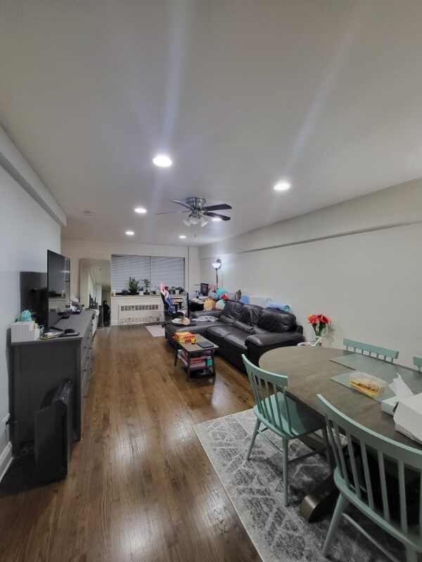Property Id: 2374109 Spacious L-shaped studio for rent in Elmhurst, Queens. This 550 sq ft apartment has a full bath, a separated kitchen with new quartz countertops, 3 closets, and ample living space for a living room, dining area, and home office set-up. Hardwood floors throughout and a large bedroom alcove with two directional windows offering an abundance of light. Fits a queen or king. Convenient location — 7 min walk to the M/R train, multiple bus lines nearby including Q72 at the building entrance. Walking distance from 3 different malls (Queens Center Mall, Queens Center, Rego Center), across the street from a bakery, other eateries, and down the street from a 24/7 grocery store. Other things to note: - Super lives a block away - Dresser under TV available for tenant use - Coop application required - Open to a 2 year lease at $1,950/month