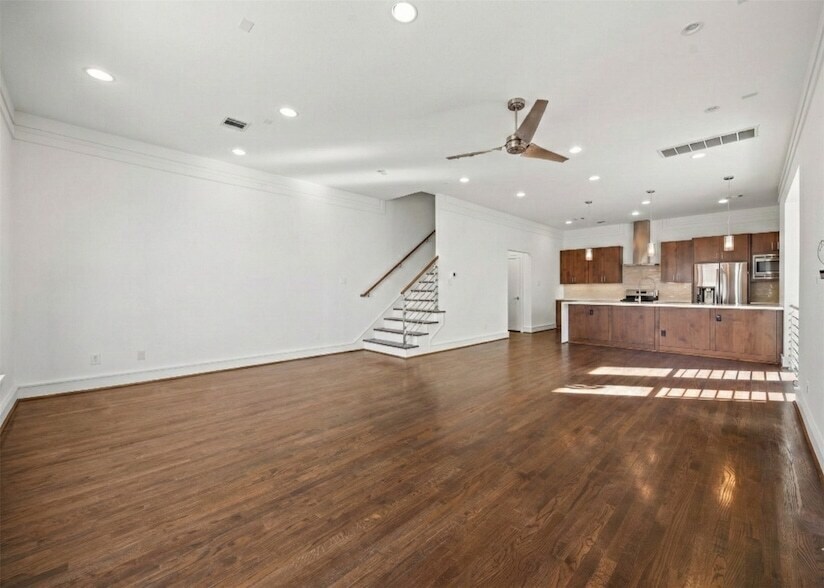 Ready for immediate move-in. Modern 3 story home with 3 bedroom suites, each with a private bathroom. Home has private parking and no shared walls. Guest bedroom suite is located on the 1st floor, and the primary and the additional guest bedroom being on the 3rd floor. Home comes with a private fenced in patio. The interior was recently painted, and has been well kept. Real wood floors in the living and kitchen areas, plus all the stairs, and the 1st and 3rd floor bedrooms. Schedule a showing soon!