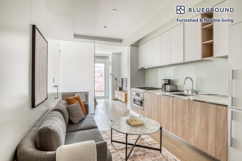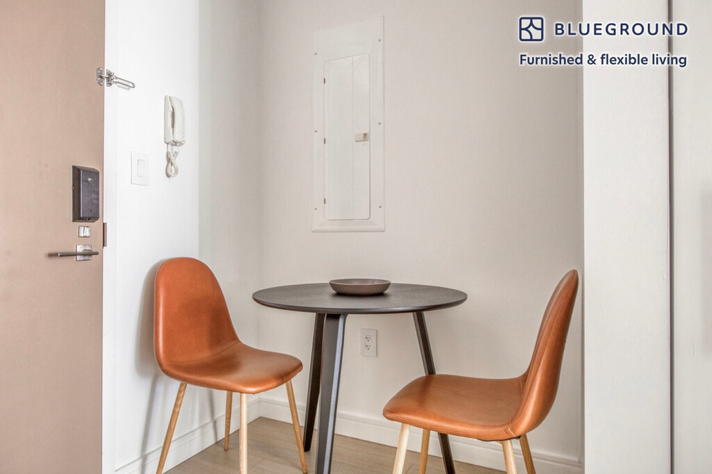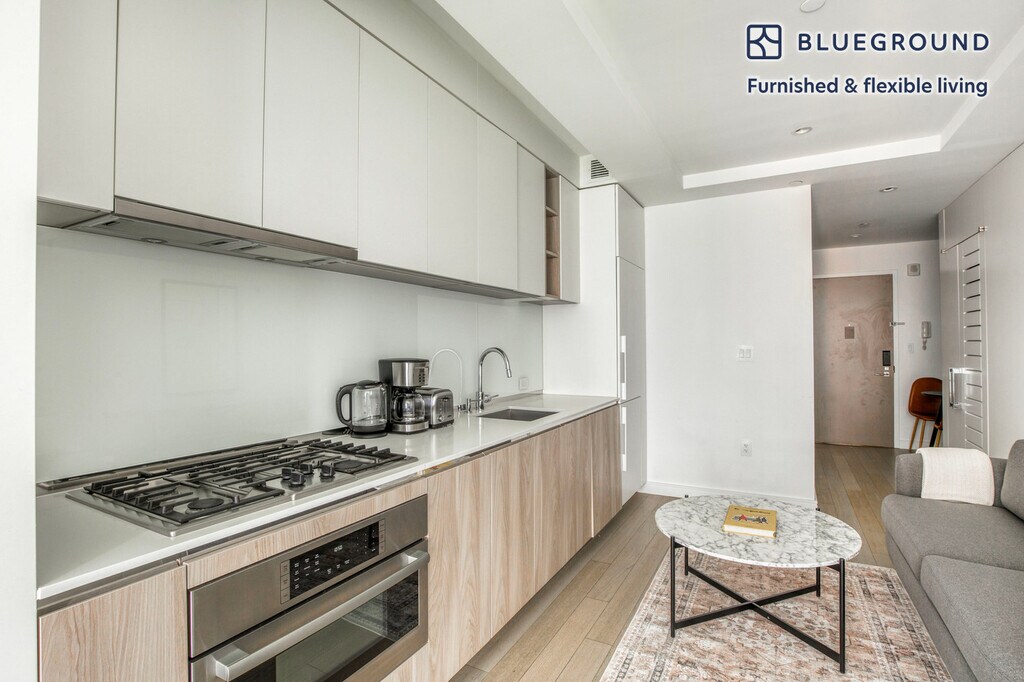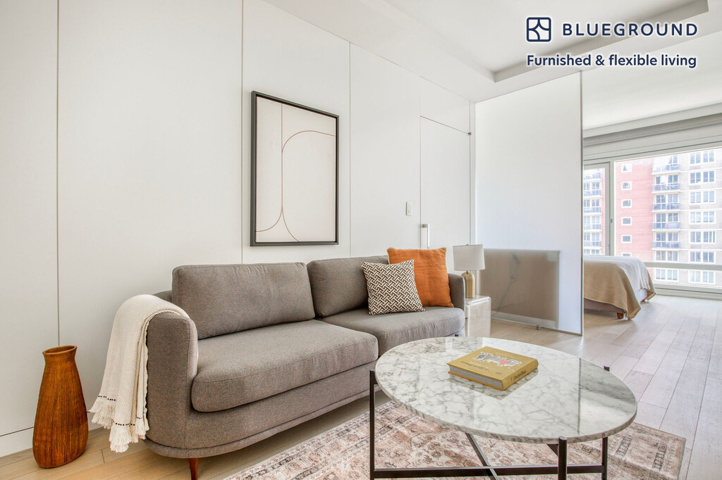 Feel at home wherever you choose to live with Blueground. You’ll love this spacious Hell's Kitchen furnished studio apartment with its modern decor, fully equipped kitchen, and comfortable living room with great views. Ideally located, you’re close to all the best that New York has to offer! (ID #NYC1511) The advertised rate of $4,690/month is the lowest available price, based on a 10 month(s) and 24 day(s) stay with a move-in date of August 2, 2026. Rates vary depending on the duration of stay, season, and other parameters. For exact pricing and additional pricing components, please visit our website and enter your desired move-in and move-out dates. The rate is applicable when billed upfront; it can be higher if billed in multiple payments. Brokers are welcome to reach out. Were you looking for an unfurnished lease? Try Blueground instead and upgrade from unfurnished to furnished living: - Furnished at rates comparable to unfurnished - No setup or furniture costs - save thousands - Move-in ready - save time, just bring your suitcase Designed with you in mind Gorgeous furniture, fully equipped kitchen, smart TV, and a premium wireless speaker are just a few of the amenities you’ll find inside this studio apartment. Ideally located in New York, you’ll find a lot to love outside as well. When you’re ready to relax, you’ll be happy to discover every Blueground bedroom comes with superior quality mattresses, luxury linens, and cozy towels. We handle everything so you can simply show up and start living. This apartment also offers in-apartment laundry. Sleeping arrangements Queen Bed, 63in/160cm Amenities Building amenities unique to this studio apartment include an on-site: - Doorman - Dryer - Elevator - Washing machine - Lounge - Pets allowed Arrival and ongoing support The entire apartment is yours to enjoy! Throughout your stay, you’ll have access to our Client Experience team through the Blueground App. You can schedule additional cleanings, submit maintenance requests, and view our neighborhood recommendations with just a few taps. We’ll share all details upon confirmation of your stay. Other things to note Building amenities may have an extra cost. This Blueground apartment has flexible lease options, allowing you to book it for one month, a year, or more. Pets are welcome, though weight limits and breed restrictions apply and may incur fees. Brokes CYOF. We take great pride in ensuring every photo displayed is shot in our own units with our actual furnishings. That said, we regularly refresh our decor and furniture arrangement, which may differ from what’s pictured.
