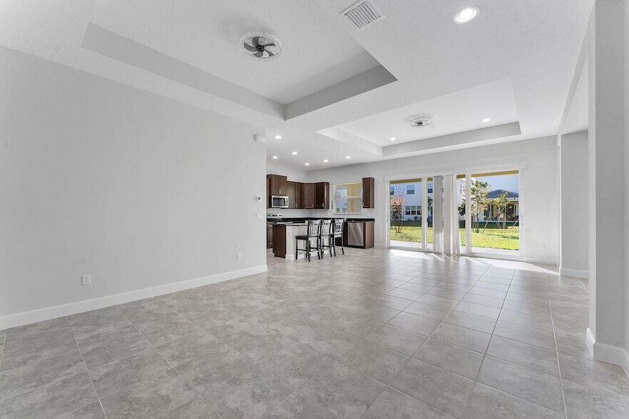 Modern Luxury Meets Ultimate Convenience. This move-in-ready gem features an open-concept layout highlighted by a gourmet kitchen with granite countertops, stainless steel appliances, and a massive prep island. High tray ceilings and tile flooring lead you to a private covered patio perfect for morning coffee. The primary suite is a true retreat, offering a charming bay window and a spa-inspired ensuite with dual vanities. Enjoy unmatched proximity to top-tier community amenities, local parks, and essential shopping, including Publix, Aldi, and the upcoming Walmart.