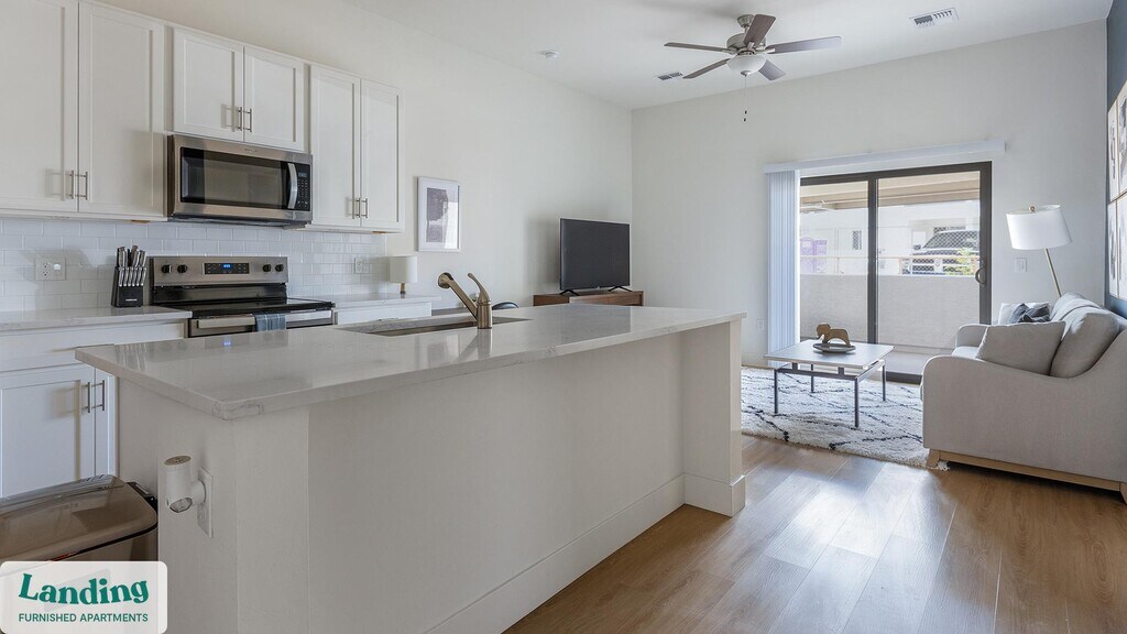 Landing offers flexible lease terms from weeks to months. Please always visit our website or contact us for the latest pricing & availability. Stay longer, save more: 6-Month Minimum base rent: starts at $2550/mo 12-Month Minimum base rent: starts at $2100/mo Landing offers flexible leases across a network of over 35,000 fully-furnished apartments throughout 375+ cities so you can rent on your terms, practically anywhere, and avoid the hassle of paying deposits or application fees. Visit to learn about all the benefits of a Landing membership, see our competitive up-to-date pricing, explore available apartments, take virtual tours, and make reservations online without jumping through traditional rental hoops. Landing's apartments at Aerie La Cholla are designed for comfortable, easy living, with the ability to stay as long as you like. Experience living with Landing Every apartment is outfitted with all the modern essentials including: custom-designed furnishings, a fully-equipped kitchen with deluxe stainless steel appliances, a gourmet coffee maker, premium linens, Smart TVs, and incredibly fast, reliable internet for working from home. When you live with Landing, you'll enjoy a hassle-free experience with the added benefit of 24/7 access to our dedicated member experience team. Some of the nitty-gritty: a background check and proof of income are required; we're completely smoke-free; bundled utility packages and pricing vary based on length of stay; pet-friendly options available; listed price reflects a 12-month minimum stay.
