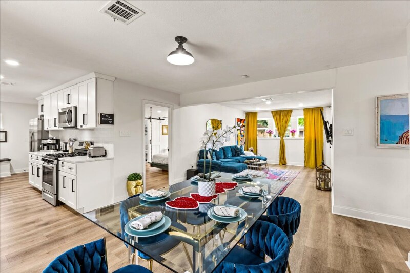 Property Id: 2019066 Welcome to your vibrant and stylish Houston retreat! This spacious 4-bedroom home features cozy beds, a fully equipped kitchen, fast Wi-Fi, and colorful artistic touches throughout. Unwind in the comfy living room, enjoy a meal in the modern kitchen, or relax by the outdoor fire pit in the spacious backyard. Sleeping arrangements include a king bed in the master, queen in bedroom 2, full bunk with twin trundle in bedroom 3, and a dedicated office in bedroom 4. Bathrooms are stocked with fresh towels, walk-in showers, a master bathtub, and well-lit vanities. Entertainment includes a flat-screen Roku TV (log into your own streaming apps) and plenty of natural light. All essentials are provided, including high-speed internet, coffee maker, and pet-friendly amenities (fees apply). Located just 10-15 minutes from top spots like Texas Medical Center, The Galleria, NRG Stadium, Hermann Park, and the Museum District. Perfect for families, professionals, or mid-term stays.