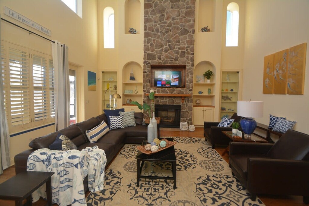 Escape to this luxurious beachfront home in Palm Coast, perfect for 1-3 families with up to 6 kids. Just steps from the ocean, this stunning 2-story residence features a great room with high ceilings, a relaxing screened-in porch, and a balcony with ocean views. With three primary suites and a kids' room with bunk beds, you'll feel at home in this exquisite setting. This luxurious beach house offers a gourmet kitchen with high-end appliances, including a double waffle maker and espresso machine. Relax on the screened-in porch or enjoy ocean views from the balcony. The home features a gas fireplace, a main-floor library and gaming center, and large plasma TVs with free streaming sites and a Wii gaming console. The fenced backyard is ideal for pets, and the 72 jet-filled hot tub and open stone fire pit provide outdoor bliss. Pets are welcome with a $100 per pet fee. Beach chairs, umbrellas, boogie boards, children's toys, and beach games are provided for your fun and convenience. This luxury beach house is ideally located, only minutes from grocery stores, restaurants, natural public parks, recreational facilities, and biking and walking trails. Enjoy exclusive access to a private beach with no public parking, ensuring a quiet and uncrowded experience. If you need a change of scenery, take a 25-minute drive to either St. Augustine or Daytona Beach or an hour's drive to Jacksonville or Orlando. Quiet hours are between 22:00 and 7:00. Do not climb the dunes outside of the designated areas and watch for turtles safely nesting on the beach. A property manager is local and always available by phone, text, or in person. Registration Number: 28--3 [SI]