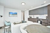 Feel at home in this exquisite condominium at 72 Park, Miami Beach, rising 22 stories with breathtaking views of the Atlantic Ocean, Intracoastal Waterways, and the Miami skyline. This beautifully designed condo offers two bedrooms, two full bathrooms, a queen sofa bed in the living room, and a balcony with partial ocean views. Enjoy access to all building amenities located on the 5th floor. This condo features a master bedroom with a king-sized bed and a guest bedroom with a queen-sized bed. The open-concept living and dining room includes a queen-sized sofa bed and a flat-screen TV. The fully equipped kitchen boasts a stainless steel dishwasher, microwave, oven, electric stove top, and a fridge with a water and ice maker. Additional amenities include an espresso coffee machine with welcome pods, a tea kettle, and a toaster. Enjoy the convenience of an in-unit washer and dryer. On-site parking is available for an additional fee. Guests have access to a nearby Beach Club on 75th St, which includes two chairs per unit, subject to availability. Umbrellas are not included. A pack n play is available upon request, and in-stay housekeeping is offered for an additional fee. Nestled in the heart of North Beach, 72 Park offers a relaxed, walkable vibe just steps from the sand. Enjoy palm-lined streets, local cafés, and family-friendly parks, all with a laid-back, Miami-modern charm. You're minutes from South Beach nightlife and Bal Harbour shopping, yet far enough to unwind in peace. Perfect for beach lovers and urban explorers alike. Getting around is easy with taxis, Uber, local buses along Collins Ave, and the free Miami Beach Trolley nearby. The building is fob-secured with on-site 24/7 security and a staffed front desk for assistance. Guests can reach out anytime through the chat for prompt responses from the team. The maximum occupancy is six guests. A remote work-friendly environment is provided with high-speed Wi-Fi and a comfortable living area, though a laptop computer is not included. [SI]