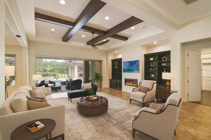 One or more photo(s) has been virtually staged. Experience luxury Florida living at its finest in this stunning one-story custom home, perfectly situated on nearly an acre in the sought-after Lake Cypress Cove community of Windermere. With approximately 3,000 square feet of beautifully designed living space, this 4-bedroom, 3-bathroom split floor plan offers both privacy and an open, inviting flow ideal for everyday living and entertaining. From the moment you step inside, you re greeted by a grand 12-foot ceiling great room accented with striking Cypress wood beams, creating an immediate sense of warmth and sophistication. The gourmet kitchen is a chef s dream, featuring premium finishes, ample counter space, and a seamless connection to the dining area and main living spaces, making it perfect for hosting family and friends.A private home office provides a quiet and productive space, while the expansive 3-car oversized garage offers built-in cabinets, a dedicated workshop area, and ample storage. The home is equipped with a high-quality reverse osmosis water treatment system for pure, great-tasting water throughout. Step outside to your personal oasis where a resort-style pool and spa await, complemented by a luxurious covered cabana with a fireplace and mounted TV perfect for outdoor entertaining year-round. The nearly one-acre lot provides privacy and plenty of space to relax, all enhanced by lush tropical landscaping.This meticulously maintained residence blends upscale finishes with thoughtful upgrades, and tenants will appreciate the added value of included services: lawn care, pool service, security monitoring, and high-speed internet are all part of the rental, ensuring a worry-free living experience.The location is just as impressive as the home itself. Situated in a peaceful, upscale neighborhood, you ll enjoy access to A-rated schools and the added benefit of being just minutes from the highly regarded Windermere Preparatory School renowned for its academic excellence and strong community. With convenient access to fine dining, boutique shopping, golf courses, and the charm of Windermere s lakes, this home offers the perfect blend of luxury, space, and location in one of Central Florida s most sought-after areas.