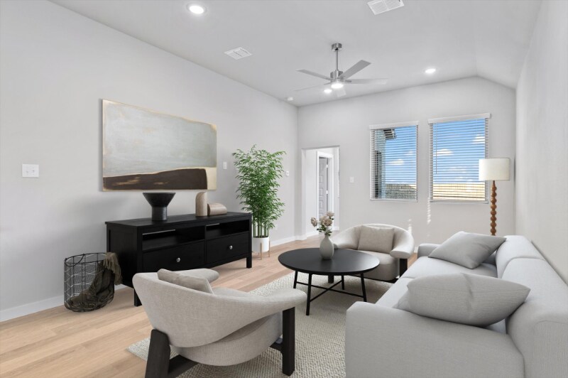 Property Id: 2170004 Accepting move-in dates through December 28th! Be the first to live in this recently built home located in the premier master-planned community of Eastridge. This home is situated towards the end of a cul-de-sac and backs up to an HOA-maintained greenbelt with views of the hills. This home features a split floor plan offering two bedrooms in the front of the home and a private primary suite in the rear, overlooking the backyard. You'll love the open living, kitchen, and dining layout which is highlighted by 10 foot ceilings, natural light, and a brand new refrigerator, washer, and dryer that will stay with the home! Eastridge is located within McKinney ISD and features: a clubhouse that can be reserved for private events, resort-style pool, fitness center, multiple parks and playgrounds, and miles of hike and bike trails. Living room is virtually staged.
