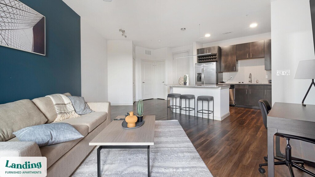 Landing offers flexible lease terms from weeks to months. Please always visit our website or contact us for the latest pricing & availability. Stay longer, save more: 6-Month Minimum base rent: starts at $1944/mo 12-Month Minimum base rent: starts at $1572/mo Landing offers flexible leases across a network of over 35,000 fully-furnished apartments throughout 375+ cities so you can rent on your terms, practically anywhere, and avoid the hassle of paying deposits or application fees. Visit to learn about all the benefits of a Landing membership, see our competitive up-to-date pricing, explore available apartments, take virtual tours, and make reservations online without jumping through traditional rental hoops. Landing's apartments at Oxly at the Merc are designed for comfortable, easy living, with the ability to stay as long as you like. Experience living with Landing Every apartment is outfitted with all the modern essentials including: custom-designed furnishings, a fully-equipped kitchen with deluxe stainless steel appliances, a gourmet coffee maker, premium linens, Smart TVs, and incredibly fast, reliable internet for working from home. When you live with Landing, you'll enjoy a hassle-free experience with the added benefit of 24/7 access to our dedicated member experience team. Some of the nitty-gritty: a background check and proof of income are required; we're completely smoke-free; bundled utility packages and pricing vary based on length of stay; pet-friendly options available; listed price reflects a 12-month minimum stay.