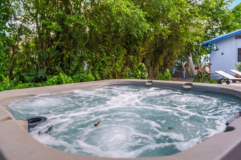 Feel at home in this stunning 3-bedroom, 2-bath split-level home near the University of Miami campus. This architecturally striking, rear-unit duplex blends gallery-style design with warm, natural textures, making it perfect for families, friends, or visiting scholars seeking both style and convenience. The main living level features an open-concept loft with a dramatic spiral staircase, soaring ceilings, and contemporary track lighting. Relax in the comfortable seating area with a plush sectional, marble-topped coffee table, and 55" smart TV. The kitchen is complete with a butcher-block island, stainless fridge, induction cooktop, dishwasher, microwave, and stocked coffee bar. There's also a breakfast bar and dining nook for casual bites or game-night gatherings. Enjoy the private patio with plush lounge chairs and a coffee table, a hot tub hidden among lush foliage, and a rooftop deck with panoramic treetop views. Furniture for the rooftop deck is provided upon request. Check-in is enabled by a smart lock for flexible arrival. The flexible layout in one of the guest bedrooms is perfect for remote work with a desk set-up. Registration Number: U [SI]