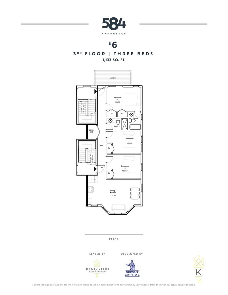There is currently a 3 Bed 2 Bath Condo for rent with 1,133 listed at 584 Cambridge St. It is Available March 1, 2026.