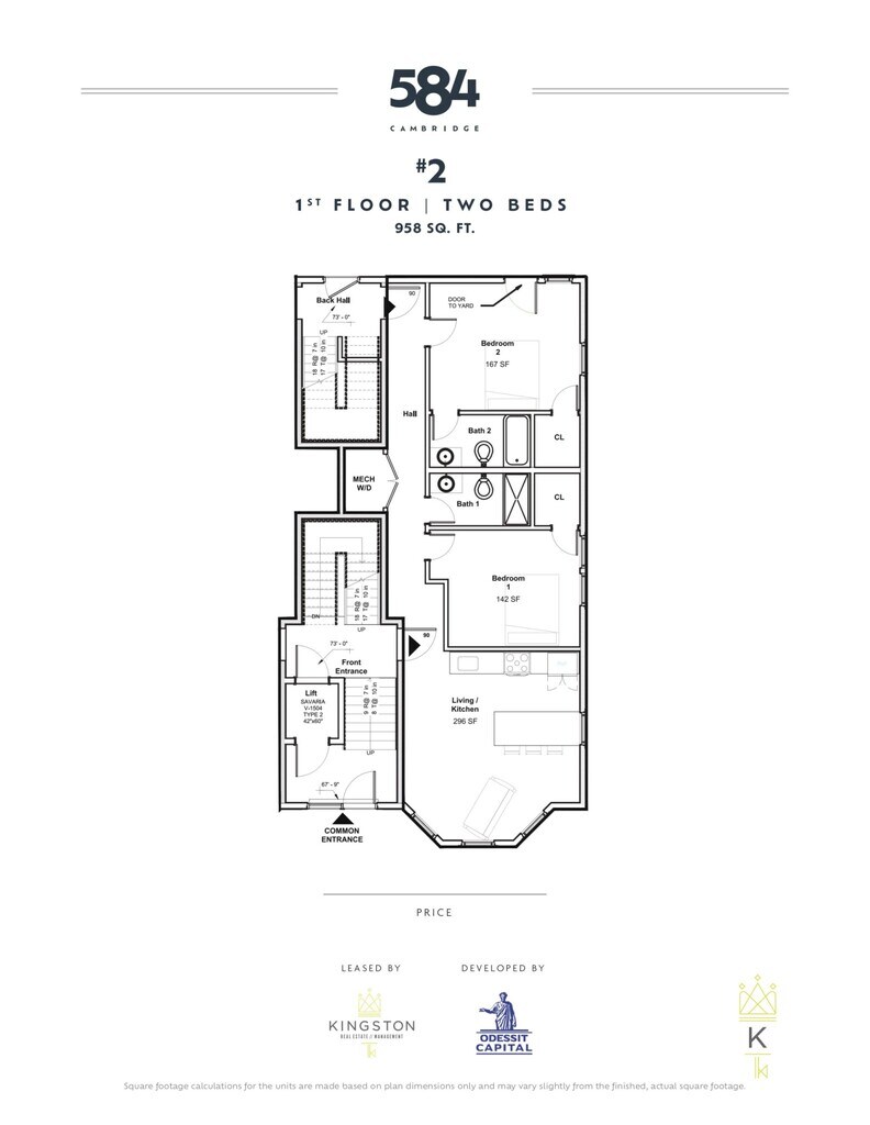 There is currently a 2 Bed 2 Bath Condo for rent with 958 listed at 584 Cambridge St. It is Available March 1, 2026.