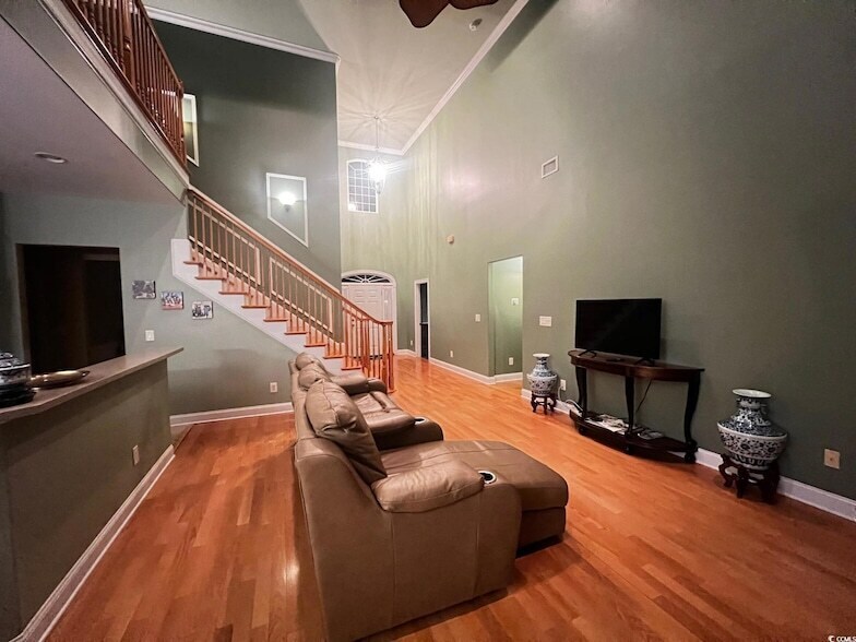 Furnished Annual Rental - Available Now Spacious 5 6 bedroom, 3-bath all-brick home located in the desirable Covington Lake community. Perfect for the family waiting for their home to be built or to just move to Myrtle Beach and see what area suits you. This property is within an award-winning school district and offers a perfect blend of comfort and convenience. The primary suite is on the first floor and features a whirlpool tub, double sinks, separate shower, private commode, and large walk-in closet. A second bedroom and full bath on the main level create an ideal guest space. Dedicated dining room and front flex/office room provide additional versatility and is perfect for a playroom, office, or another bedroom. Laundry room is located near the attached two-car garage. Upstairs includes three additional bedrooms, a full bath, and a loft area. This home also offers abundant storage throughout. This open floor plan highlights a large window bank in the family room overlooking the backyard and serene lake views, where you can enjoy the relaxing sounds of two water fountains. Beautiful hardwood floors throughout. Property features a fenced-in backyard with irrigation. Landscaping services are included in the rental price. Flexible lease options available for up to 3 years. Conveniently located near shopping, schools, medical facilities, restaurants, parks, the beach, and the airport.
