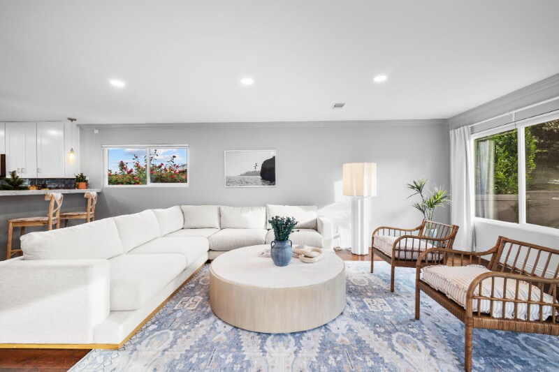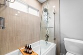 Property Id: 2310607 Spacious & Comfortable Bedrooms - Four generously sized bedrooms designed for privacy and long-term comfort - Sleeping accommodations include: 2 King beds, 1 Queen bed, and 2 Full beds - Both King bedrooms feature dedicated desks ideal for remote work - Two bedrooms include deep soaking tubs for added relaxation - Bright, uncluttered, peaceful rooms suitable for extended stays - Family-friendly features: pack 'n play, high chair, and changing table Fully Equipped Kitchen - Large kitchen designed for long-term use - Full-size refrigerator plus an additional smaller fridge - Stainless steel appliances, blender, coffee maker, toaster, and full cookware set - Built-in wine rack and ample storage Open Living Room - Spacious living area with seating for the entire household - 75-inch Smart TV - Remote-controlled fireplace - Open-concept layout connecting the living room, kitchen, and outdoor space Outdoor Space - Peaceful backyard with multiple patios ideal for morning coffee or outdoor dining - Modern fire feature and string lighting for evening ambiance - Gas grill available for long-term convenience Work & Entertainment - High-speed Wi-Fi throughout the property - Two dedicated office spaces located in the primary bedrooms - 75-inch Smart TV in the main living area for entertainment Location - Minutes to La Jolla Shores, Windansea Beach, La Jolla Cove, UCSD, Torrey Pines, SeaWorld, and local dining and boutiques - Located in a quiet, walkable neighborhood ideal for morning or evening strolls Laundry - In-home washer and dryer for extended stay convenience Parking - Street parking plus driveway or garage options - EV charger available for $25 per night - Guests are responsible for observing posted parking regulations Security & Safety - Keyless entry system - 24/7 exterior video monitoring - Noise and temperature sensors to maintain comfort and protect the quiet neighborhood - Noise curfew after 10 PM