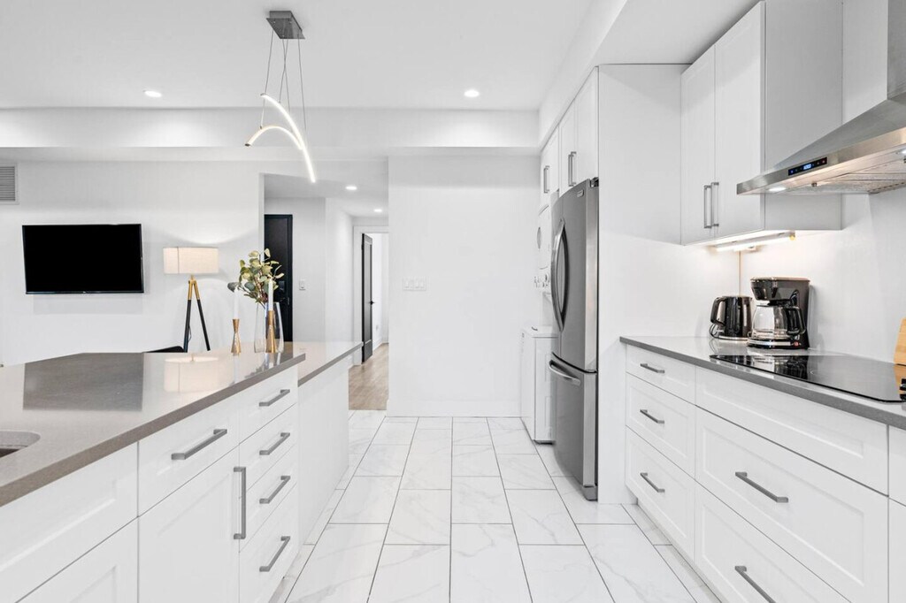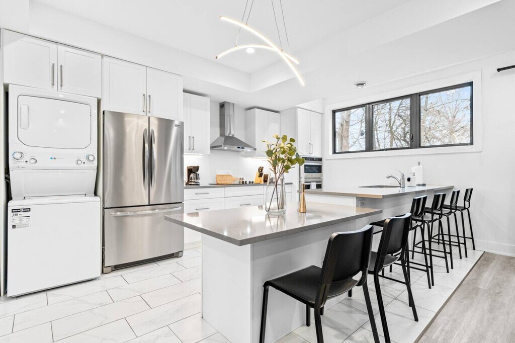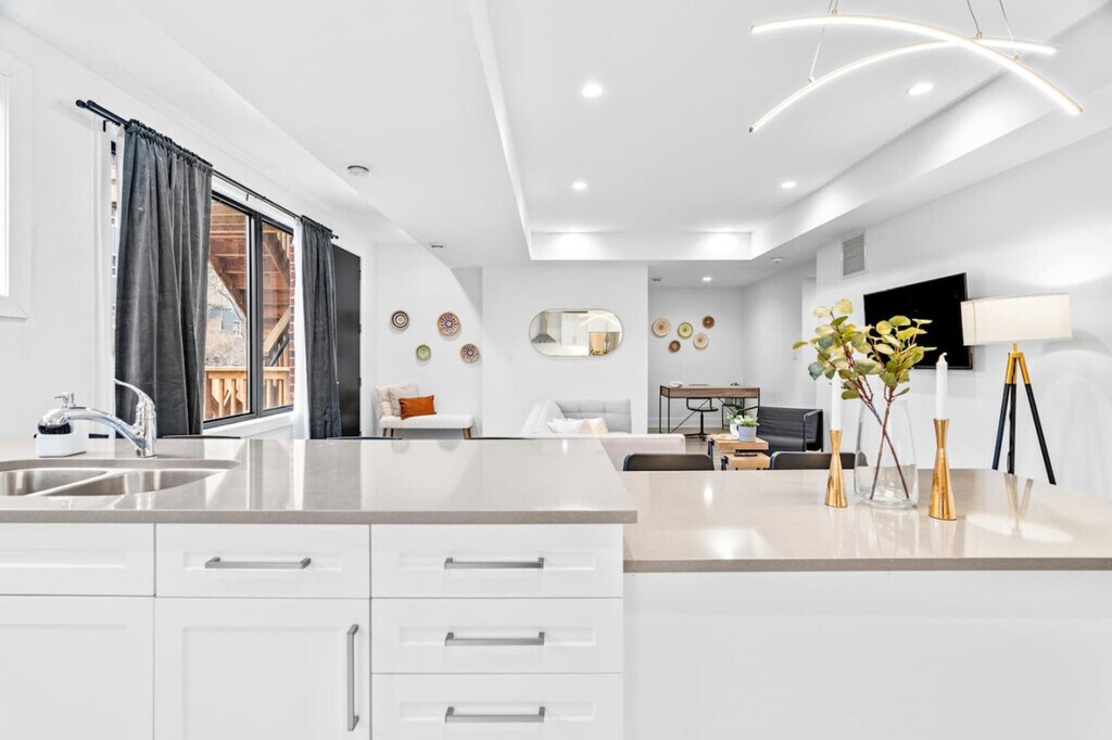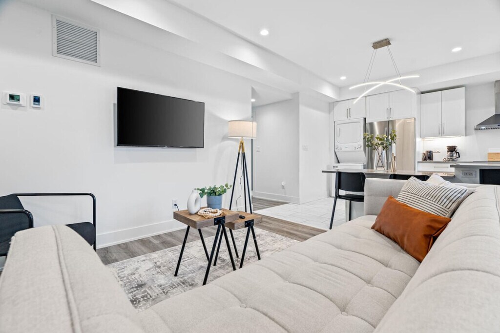 The advertised rate of C$2,738/month is the lowest available price, based on a 30 day(s) stay with a move-in date of March 7, 2026. Rates vary depending on the duration of stay, season, and other parameters. For exact pricing and additional pricing components, please visit our website and enter your desired move-in and move-out dates. The rate is applicable when billed upfront; it can be higher if billed in multiple payments. Feel at home in this brand new, professionally designed 1,200 sq ft apartment, offering modern style and comfort. This apartment features a fully stocked kitchen, a living room with a Smart TV, super high-speed Wi-Fi, a walk-in closet, an en-suite bathroom, an in-unit washer/dryer, and top-of-the-line appliances. Parking is located at the back of the building, and one parking space is available for guests. Pets are welcome with a fee of $25 per day for 1-5 days, $200 for 6-28 days, or $300 for 29+ days. Centrally located in the heart of London on Queens Ave, this apartment is close to groceries, the LCBO, and eateries. It's just 3 minutes from the downtown core and Fanshawe College, with easy access to public transit. Western University and Fanshawe College are both within a 5 km drive. The city's core, with its abundance of bars, restaurants, shopping, and event centers, is just 1.5 km away. Quiet hours are from 10 pm to 8 am. Smoking is not allowed inside the property, and evidence of indoor smoking will result in a $1000 fine. Pets are not allowed on fabric couches, chairs, or beds, and any evidence of this will result in additional cleaning charges. No parties or undeclared social gatherings are allowed, and guests will be charged $500 for breaking this rule. A surcharge of $100 per undeclared guest per night will be applied for unapproved guests. Lock all windows and doors if you are not home. Security cameras monitor the entrance of the home for safety and security. Tampering with these cameras or the noise monitoring device will result in immediate cancellation of the reservation. The rear fire escape is to only be used during an emergency, and stairs must be clear of all obstructions. Please ensure the rear door and wooden gate are closed at all times. There is a late check-out penalty of $100 per hour after 11:00 a.m. in case of a delayed check-out. The door may not lock automatically, so you will have to make sure it is locked before you leave the apartment. [SI]