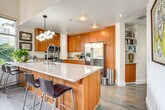 Located in The Terraces at Emerystation, this 2-bedroom, 2-bath condo offers a prime location just 10 miles from downtown San Francisco. Situated on the 4th floor, this single-story condo provides step-free entry via a community elevator, making it easily accessible. Feel at home in this vacation rental, perfectly positioned near San Francisco and Berkeley, offering endless adventures. Enjoy the comfort of a spacious living area featuring a 65" Smart TV, a dining table, and a breakfast bar. The private balcony with seating provides a perfect spot to relax. The fully equipped kitchen includes a refrigerator, microwave, stove/oven, dishwasher, drip coffee maker with milk steamer, toaster, and all the cooking basics and dishware you need. Parking is available in the community garage for one vehicle. Additional fees and taxes may apply. Explore the best of The Golden State with this condo's ideal location near San Francisco and Berkeley. Whether you're catching a ball game at Oracle Park or savoring delicious seafood at Fisherman's Wharf, a memorable trip awaits. The neighborhood offers convenient access to public transportation and nearby attractions. This property features one exterior security camera located at the front door facing the entryway, recording video and audio when motion is detected. Quiet hours are observed from 9:00 PM to 7:00 AM. No smoking, pets, events, parties, or large gatherings are allowed. Guests must be at least 25 years old to book. Keyless entry provides easy access to the entire property. Includes free WiFi and two portable air conditioners to ensure a comfortable work-from-home experience. [SI]