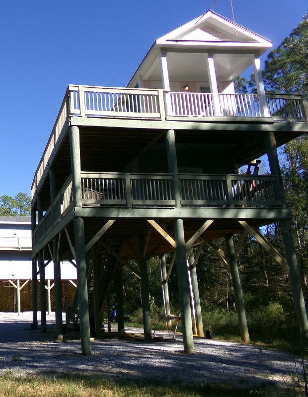 Property Id: 2225887 Unfurnished A very high up, large porches, one bedroom, Katrina Cottage, 22 foot up stairs, and below it a studio or office spare room with full washer and dryer and sink, and at ground level is parking. Lots of porches, and nice walking in the area. This is in woods minutes from the beach and down town Pass Christian; beside another house, and requires a very Quiet and respectful tenant. Lots of room for growing vegetables and flowers, loaded with wild life, just off a small bayou. As this is part of the property which holds another house, someone quiet, respectful of the others, and pleasant, is needed, and you will be treated that way as well. The bayou has a small dock, there are some trails in the woods, a pond, lawn and garden on a very quiet road. You will see a lot of wild life and greenery, it is a sort of refuge back there. The stairs will keep you fit, and it is up level with the trees. No smoking, Mature, responsible, pleasant, someone who would help watch over the area. All Utilities included, internet can be added for the cost to the owner. Good credit and sufficient income to support rent, and references required.