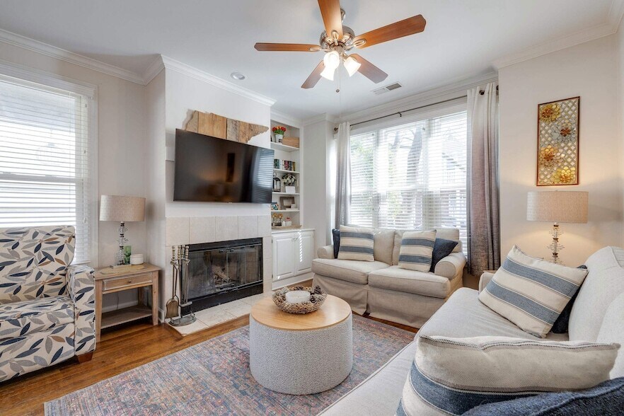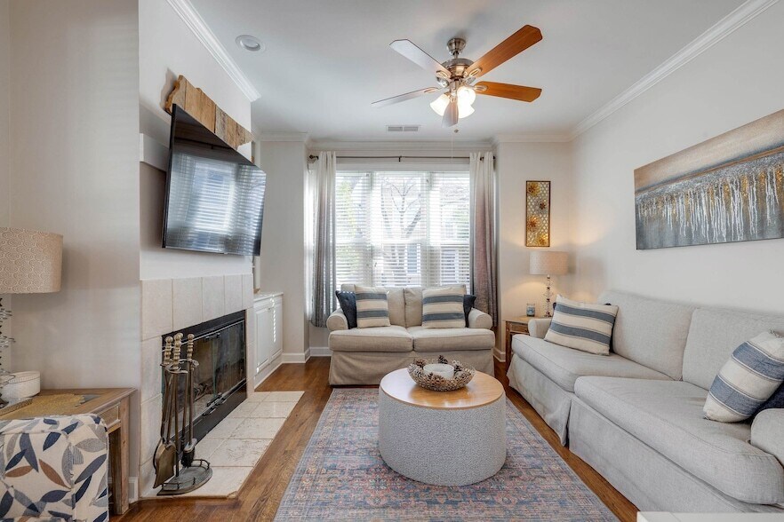 For Lease: available for a 6 month, $2300 a month. Furnished for $2500 a month. *no pets, credit check, deposit. 2-bed, 2.5bath South Bluffs home in a gated Memphis community. This residence is low-maintenance with a newer roof, HVAC, water heater, and SS appliances. Features hardwood floors, gas fireplace, high ceilings, updated eat-in kitchen and 2.5 modern bathrooms. Both bedrooms are en suites w/ updated full bathrooms; the primary suite includes a walk-in closet w/ organizers. Fresh interior/exterior paint, covered porch, screened balcony and fenced patio perfect for entertaining. Includes two private parking spaces. Steps from Tom Lee Park, River Walk, Memphis and South Main s dining/arts. Gated neighborhood with quiet streets, private park and optional amenities: pools, tennis/pickle courts, 24-hour gym (separate fee). Downtown Living, close to restaurants, shopping, festivals, farmers market, bike and walking trails, NBA and Concerts at the FedEx forum.