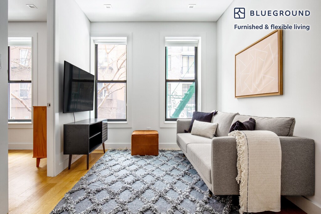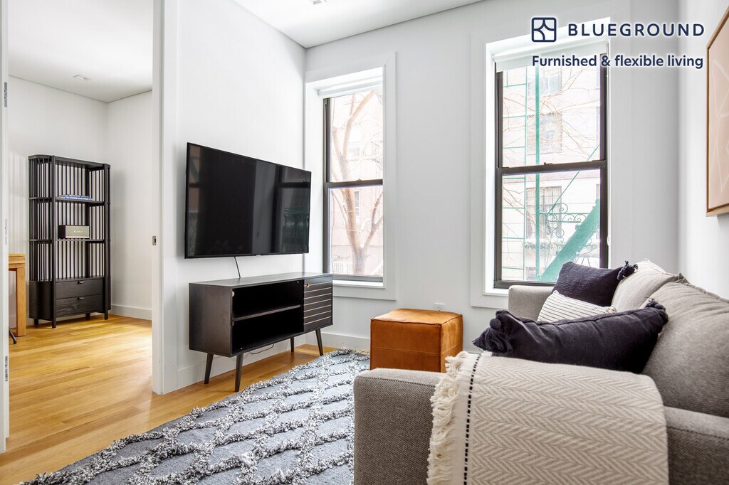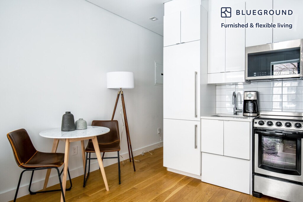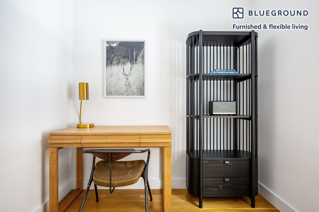 Discover the best of New York, with this one bedroom apartment in SoHo with views over the city. It’ll be easy to simply show up and start living in this furnished apartment with its fully equipped kitchen, living room, and our dedicated, on-the-ground support. (ID #NYC547) The advertised rate of $5,480/month is the lowest available price, based on a 1 month(s) and 27 day(s) stay with a move-in date of January 12, 2027. If you’re looking for a 1-year stay, the rate is $6,120/month. Rates vary depending on the duration of stay, season, and other parameters. For exact pricing and additional pricing components, please visit our website and enter your desired move-in and move-out dates. The rate is applicable when billed upfront; it can be higher if billed in multiple payments. Brokers are welcome to reach out. Were you looking for an unfurnished lease? Try Blueground instead and upgrade from unfurnished to furnished living: - Furnished at rates comparable to unfurnished - No setup or furniture costs - save thousands - Move-in ready - save time, just bring your suitcase Designed with you in mind Thoughtfully designed with bespoke finishes, modern furnishings, and a fully equipped kitchen, you’ll enjoy that “I’m home” feeling with this Blueground apartment. Whether you’re lounging in your beautiful living room streaming the latest and greatest entertainment on the smart TV or premium wireless speaker, or getting some well-earned rest on the superior quality mattress with fully stocked linens, you’ll fall in love with everything this SoHo apartment has to offer. This apartment also offers in-apartment laundry. Sleeping arrangements Queen Bed, 63in/160cm Amenities Building amenities unique to this one bedroom apartment include an on-site: - Dryer - Washing machine Arrival and ongoing support The entire apartment is yours to enjoy! Throughout your stay, you’ll have access to our Client Experience team through the Blueground App. You can schedule additional cleanings, submit maintenance requests, and view our neighborhood recommendations with just a few taps. We’ll share all details upon confirmation of your stay. Ideally Located This furnished apartment is located in SoHo (which is short for South of Houston Street). Full of designer boutiques and high-end art galleries, this Lower Manhattan neighborhood is a popular destination for both locals and out-of-towners. Known for its elegant cast iron facades and cobblestone streets, it is a hot spot during the night or the day. The unique buildings set this neighborhood apart. In fact, it has been said that SoHo has the greatest collection of cast-iron architecture in the world. The fashionable crowd that frequents the area enjoys the countless shopping and dining options. The various bus and subway lines keep SoHo easily connected with the rest of the city. Using the subway, Times Square is just 20 minutes away. Other things to note This Blueground apartment has flexible lease options, allowing you to book it for one month, a year, or more. Please keep in mind that this is a walk up building. Brokes CYOF. We take great pride in ensuring every photo displayed is shot in our own units with our actual furnishings. That said, we regularly refresh our decor and furniture arrangement, which may differ from what’s pictured. [SI]