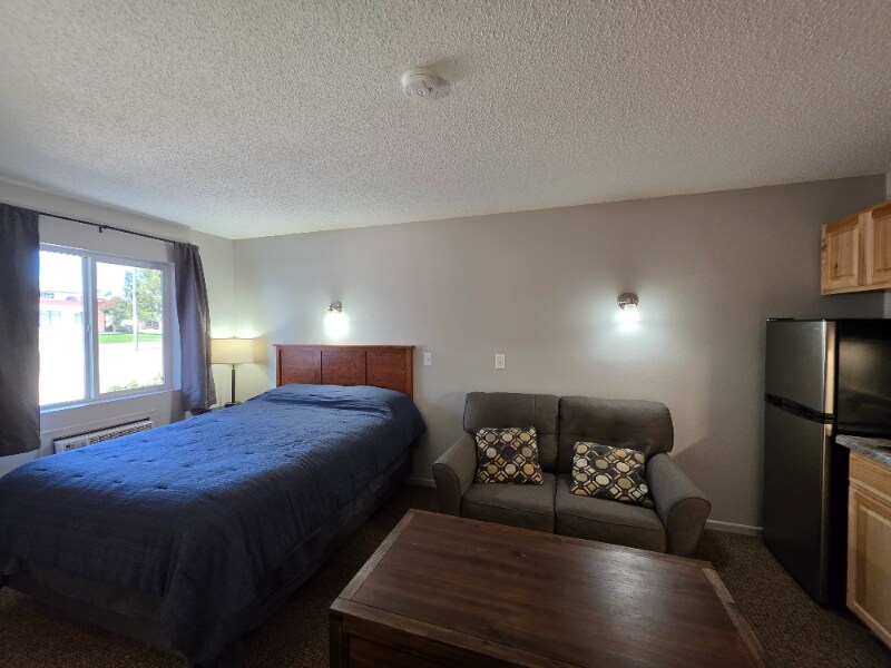 Property Id: 973631 The Sagewood Suites have newly remodeled, furnished, studio, and one bedroom apartments available. The apartments come furnished with a 50-inch smart TV, queen-sized bed, couch, coffee table, microwave, two burner cooktop, and a full-size refrigerator. All Utilities are included in the monthly rent. On site laundry facilities. 1.4 miles from Downtown Rapid City 1.3 miles from Rushmore Crossing Center 3.1 miles from Monument Health Hospital 9.4 miles from Ellsworth Air Force Base