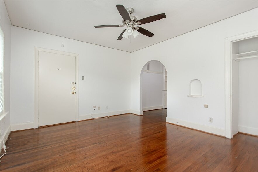 ***Leasing Special! 13 Month Lease with 1 Month Free***1 Bedroom, 1 Bath apartment located two blocks from both Lower Greenville and the heart of Lakewood. Unit has hardwood floors throughout, charming arched doorways, built-in corner shelves, plus ceiling fans and window & air heater units. The galley kitchen has vinyl flooring and appliances include a refrigerator and electric range. On-site washer and dryer. Tenant pays electric only. No Pets.