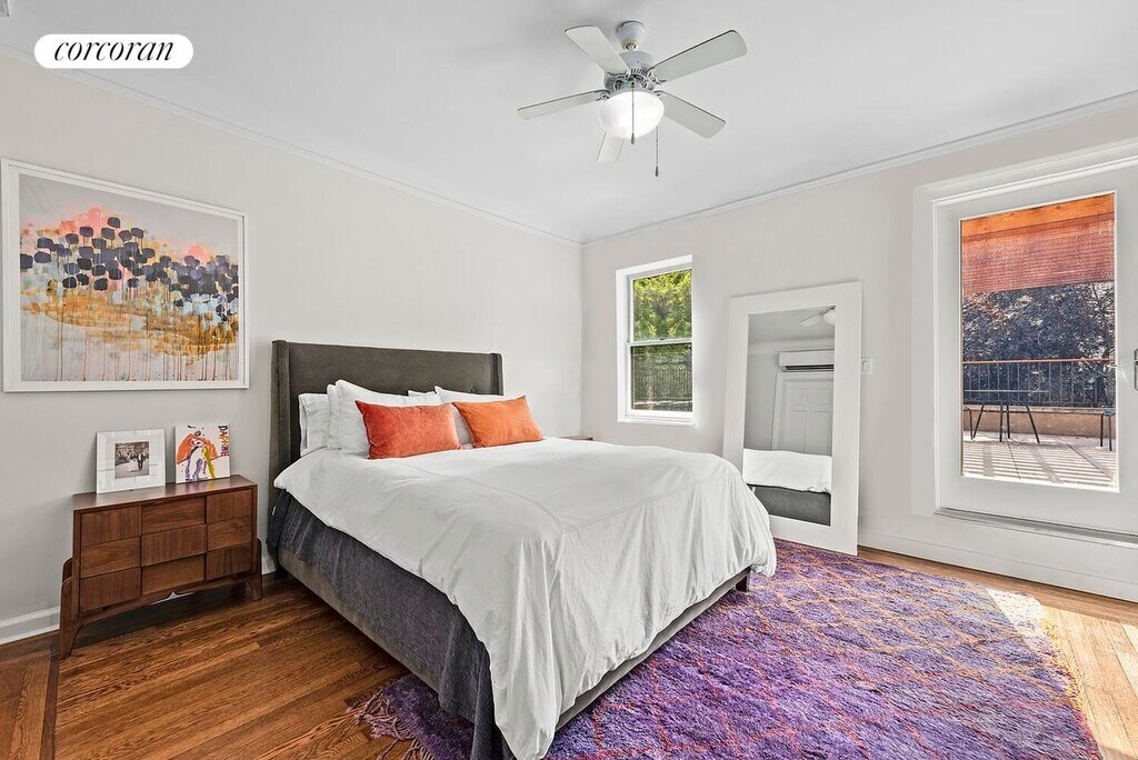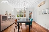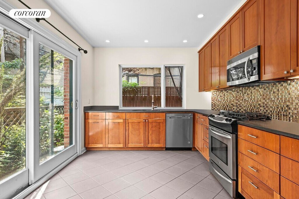 Quintessential Brownstone Brooklyn living awaits in this gorgeous five-bedroom, three-and-a-half-bathroom Park Slope townhouse, just inches from Prospect Park.A charming front garden invites you inside the parlor level to discover a classic double vestibule, inlaid hardwood floors, tall coved ceilings and bright northern and southern exposures. Relax in front of the stately wood-burning fireplace in the sunny living room, or welcome lavish dinner parties in the formal dining room topped by breathtaking arabesque tin ceilings. Ahead, the spacious eat-in contemporary kitchen boasts beautiful wood cabinetry, stone counters, mosaic tile backsplashes and stainless steel appliances, including a gas range, dishwasher and built-in microwave. Wide sliding doors open to the beautiful south-facing garden featuring a gas grill, perfect for al fresco entertaining. A convenient coat closet and powder room complete the level.Above, the glorious owner's suite features a huge private terrace, two roomy closets and an en suite marble bathroom. There's another bedroom on this level that's ideal as a home office. On the top floor, another full bathroom is flanked by two more lovely bedrooms - one with a beautiful fireplace alcove and another with built-in shelving. Head to the finished cellar level to find additional living space, a kitchenette, bedroom and bathroom. A large laundry room, extra closet space and central air add comfort and ease to this Park Slope sanctuary.Set within the Park Slope Historic District, 592 3rd Street boasts a breathtaking brick fa ade that combines Flemish bond and projecting diamond-patterned headers to masterful effect. Located on a stunning tree-lined street, this home is close to the neighborhood's renowned dining, shopping and nightlife. At the end of the block, Prospect Park's Lion's Gate reveals 526 acres of outdoor splendor, including miles of trails, rolling lawns, playgrounds, ball fields and events. Head to Grand Army Plaza to enjoy a year-round greenmarket - the second-largest in the city - or venture a bit further to explore the Brooklyn Museum, Library and Botanic Garden. Transportation from this coveted neighborhood is a breeze with B/F, G, 2/3 and Q trains, excellent bus service and CitiBikes within easy reach.Upfront costs include a $20 rental application fee, first month's rent, and one month's security deposit.