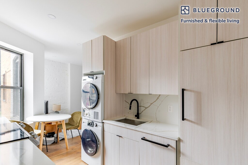 Show up and start living from day one in New York with this stylish two bedroom Blueground apartment. You’ll love coming home to this thoughtfully furnished, beautifully designed, and fully equipped Alphabet City home. (ID #NYC1899) The advertised rate of $6,381/month is the lowest available price, based on a 11 month(s) and 19 day(s) stay with a move-in date of March 22, 2026. Rates vary depending on the duration of stay, season, and other parameters. For exact pricing and additional pricing components, please visit our website and enter your desired move-in and move-out dates. The rate is applicable when billed upfront; it can be higher if billed in multiple payments. Brokers are welcome to reach out. Were you looking for an unfurnished lease? Try Blueground instead and upgrade from unfurnished to furnished living: - Furnished at rates comparable to unfurnished - No setup or furniture costs - save thousands - Move-in ready - save time, just bring your suitcase Designed with you in mind Thoughtfully designed with bespoke finishes, modern furnishings, and a fully equipped kitchen, you’ll enjoy that “I’m home” feeling with this Blueground apartment. Whether you’re lounging in your cheery living room streaming the latest and greatest entertainment on the smart TV or premium wireless speaker, or getting some well-earned rest on the superior quality mattress with fully stocked linens, you’ll fall in love with everything this Alphabet City apartment has to offer. This apartment also offers in-apartment laundry. Sleeping arrangements Queen Bed, 63in/160cm Queen Bed, 63in/160cm Amenities Building amenities unique to this two bedroom apartment include an on-site: - Dryer - Washing machine Arrival and ongoing support The entire apartment is yours to enjoy! Throughout your stay, you’ll have access to our Client Experience team through the Blueground App. You can schedule additional cleanings, submit maintenance requests, and view our neighborhood recommendations with just a few taps. We’ll share all details upon confirmation of your stay. Other things to note This Blueground apartment has flexible lease options, allowing you to book it for one month, a year, or more. Please keep in mind that this is a walk up building. Brokes CYOF. We take great pride in ensuring every photo displayed is shot in our own units with our actual furnishings. That said, we regularly refresh our decor and furniture arrangement, which may differ from what’s pictured. [SI]