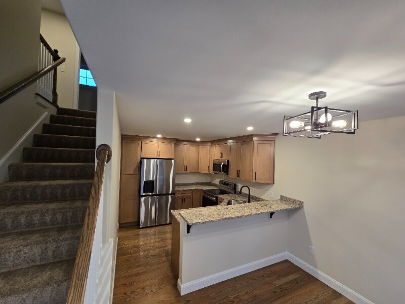 Property Id: 2219311 Be the first to live in this new home. When you enter the home through your craftsman style front door you will notice the beautiful sanded in place hardwood floors which cover the entire first floor. The entry foyer gives you access to your garage, the lbaseme the kithen, 1/2 bath, living room, and foyer entry coat closet. The garage has a wifi and battery backed up operator for you convience to allow remote entry. The full basement has lots of storage space, high efficiency on demand natural gas tankless hat water and Natural gas forced hot air furnace with AC. Kitchen has LG stainless steel appliances, modern finishes granite tops, large single bowl S/S sink with high neck pullout faucet and a breakfast bar. Dinette off kitchen with large windows. The large llving room has a nat gas fireplace and ledge stone surround The 2nd floor has a centally located large laundry room, full bath and large linen closet. 2 guest bedrooms and Large primary bedrm and bath with W/I closet.