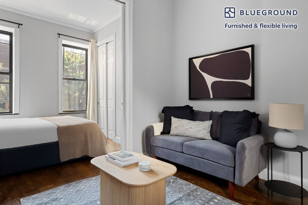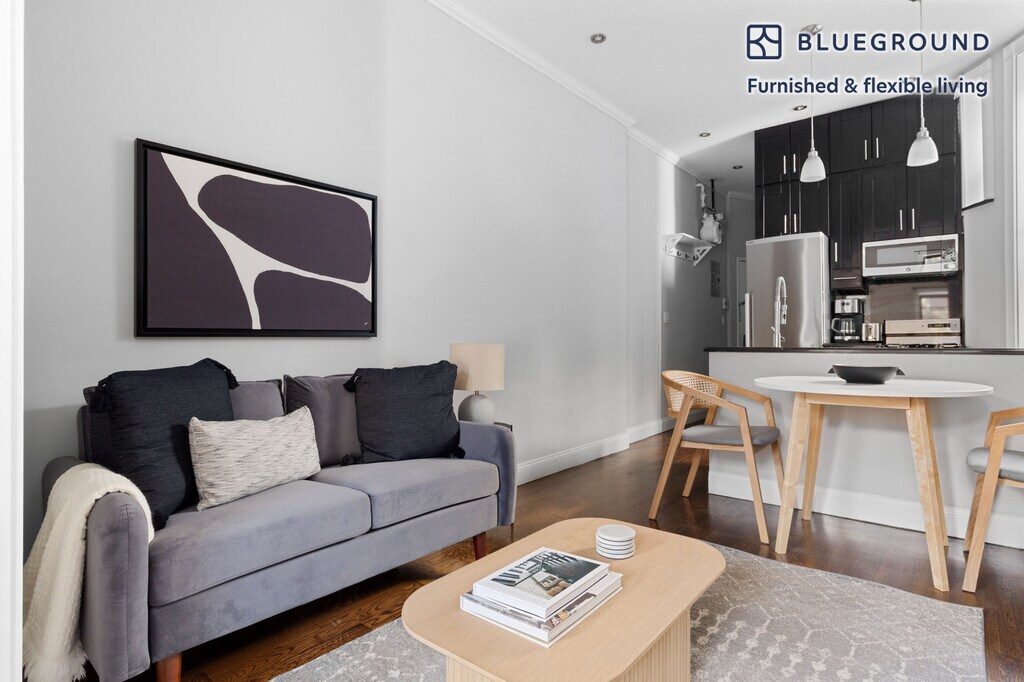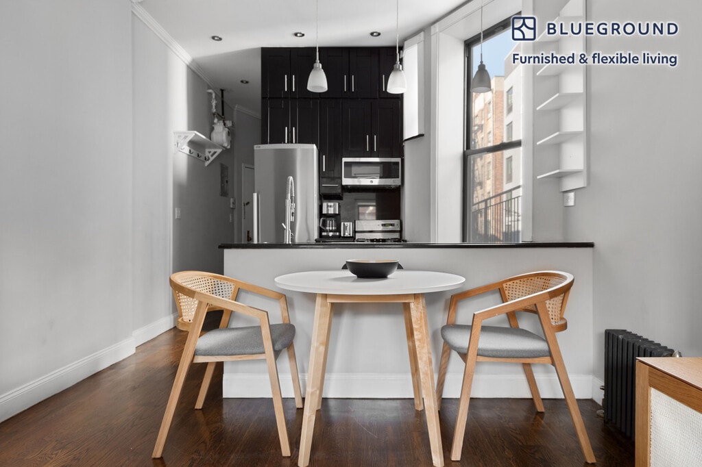 Show up and start living from day one in New York with this stylish two bedroom Blueground apartment. You’ll love coming home to this thoughtfully furnished, beautifully designed, and fully equipped Alphabet City home. (ID #NYC1277) The advertised rate of $3,270/month is the lowest available price, based on a 1 month(s) and 3 day(s) stay with a move-in date of December 21, 2025. If you’re looking for a 1-year stay, the rate is $4,710/month. Rates vary depending on the duration of stay, season, and other parameters. For exact pricing and additional pricing components, please visit our website and enter your desired move-in and move-out dates. The rate is applicable when billed upfront; it can be higher if billed in multiple payments. Brokers are welcome to reach out. Were you looking for an unfurnished lease? Try Blueground instead and upgrade from unfurnished to furnished living: - Furnished at rates comparable to unfurnished - No setup or furniture costs - save thousands - Move-in ready - save time, just bring your suitcase Designed with you in mind Thoughtfully designed with bespoke finishes, modern furnishings, and a fully equipped kitchen, you’ll enjoy that “I’m home” feeling with this Blueground apartment. Whether you’re lounging in your cheery living room streaming the latest and greatest entertainment on the smart TV or premium wireless speaker, or getting some well-earned rest on the superior quality mattress with luxury linens, you’ll fall in love with everything this Alphabet City apartment has to offer. This apartment also offers in-apartment laundry. Sleeping arrangements Queen Bed, 63in/160cm Double Bed, 55in/140cm Amenities Building amenities unique to this two bedroom apartment include an on-site: - Dryer - Washing machine - Pets allowed Arrival and ongoing support The entire apartment is yours to enjoy! Throughout your stay, you’ll have access to our Client Experience team through the Blueground App. You can schedule additional cleanings, submit maintenance requests, and view our neighborhood recommendations with just a few taps. We’ll share all details upon confirmation of your stay. Other things to note This Blueground apartment has flexible lease options, allowing you to book it for one month, a year, or more. Pets are welcome, though weight limits and breed restrictions apply and may incur fees. Please keep in mind that this is a walk up building. Brokes CYOF. We take great pride in ensuring every photo displayed is shot in our own units with our actual furnishings. That said, we regularly refresh our decor and furniture arrangement, which may differ from what’s pictured. [SI]