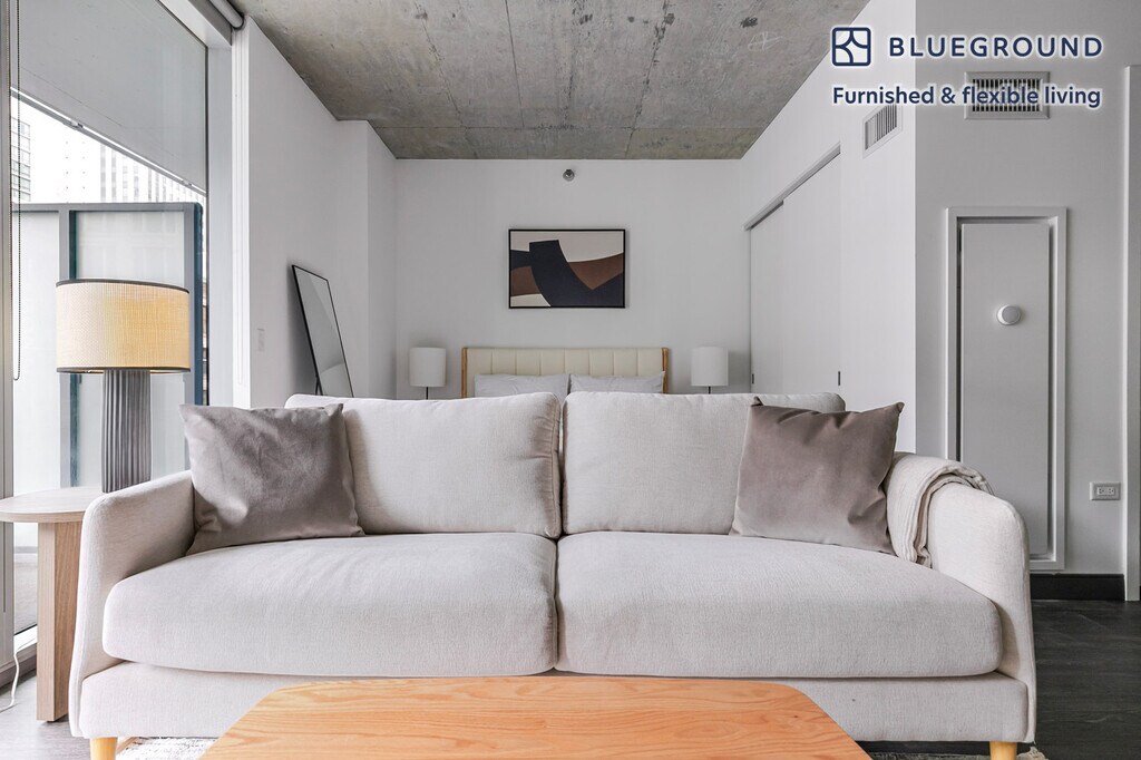 Feel at home wherever you choose to live with Blueground. You’ll love this sophisticated Chicago Loop furnished one bedroom apartment with its modern decor, fully equipped kitchen, and charming living room. Ideally located, you’re close to all the best that Chicago has to offer! (ID #CHI1346) The advertised rate of $2,320/month is the lowest available price, based on a 5 month(s) and 6 day(s) stay with a move-in date of October 28, 2025. If you’re looking for a 1-year stay, the rate is $3,040/month. Rates vary depending on the duration of stay, season, and other parameters. For exact pricing and additional pricing components, please visit our website and enter your desired move-in and move-out dates. The rate is applicable when billed upfront; it can be higher if billed in multiple payments. Brokers are welcome to reach out. Were you looking for an unfurnished lease? Try Blueground instead and upgrade from unfurnished to furnished living: - Furnished at rates comparable to unfurnished - No setup or furniture costs - save thousands - Move-in ready - save time, just bring your suitcase Designed with you in mind As with any Blueground apartment, you’ll find a thoughtfully designed space complete with beautiful furniture and a fully equipped kitchen in this one bedroom property. And, thanks to our superior quality mattresses, luxury linens, and towels, you can relax knowing you’ll always feel comfortably at home. When you’re ready for some fun, you can take in the Chicago vibes or bring the entertainment to you with the premium wireless speaker or smart TV. This apartment also offers in-apartment laundry. Sleeping arrangements Queen Bed, 63in/160cm Amenities Building amenities unique to this one bedroom apartment include an on-site: - Dryer - Elevator - Swimming pool - Washing machine - Pets allowed Arrival and ongoing support The entire apartment is yours to enjoy! Throughout your stay, you’ll have access to our Client Experience team through the Blueground App. You can schedule additional cleanings, submit maintenance requests, and view our neighborhood recommendations with just a few taps. We’ll share all details upon confirmation of your stay. Other things to note Building amenities may have an extra cost. This Blueground apartment has flexible lease options, allowing you to book it for one month, a year, or more. Pets are welcome, though weight limits and breed restrictions apply and may incur fees. We take great pride in ensuring every photo displayed is shot in our own units with our actual furnishings. That said, we regularly refresh our decor and furniture arrangement, which may differ from what’s pictured. [SI]