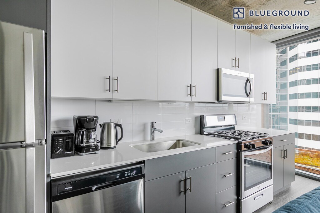 Feel at home wherever you choose to live with Blueground. You’ll love this lovely The Loop furnished one bedroom apartment with its modern decor, fully equipped kitchen, and spacious living room. Ideally located, you’re close to all the best that Chicago has to offer! (ID #CHI1370) The advertised rate of $1,730/month is the lowest available price, based on a 1 month(s) and 1 day(s) stay with a move-in date of December 22, 2025. If you’re looking for a 1-year stay, the rate is $2,470/month. Rates vary depending on the duration of stay, season, and other parameters. For exact pricing and additional pricing components, please visit our website and enter your desired move-in and move-out dates. The rate is applicable when billed upfront; it can be higher if billed in multiple payments. Brokers are welcome to reach out. Were you looking for an unfurnished lease? Try Blueground instead and upgrade from unfurnished to furnished living: - Furnished at rates comparable to unfurnished - No setup or furniture costs - save thousands - Move-in ready - save time, just bring your suitcase Designed with you in mind As with any Blueground apartment, you’ll find a thoughtfully designed space complete with beautiful furniture and a fully equipped kitchen in this one bedroom property. And, thanks to our superior quality mattresses, luxury linens, and towels, you can relax knowing you’ll always feel comfortably at home. When you’re ready for some fun, you can take in the Chicago vibes or bring the entertainment to you with the premium wireless speaker or smart TV. This apartment also offers in-apartment laundry. Sleeping arrangements Queen Bed, 63in/160cm Amenities Building amenities unique to this one bedroom apartment include an on-site: - Dryer - Elevator - Swimming pool - Washing machine - Pets allowed Arrival and ongoing support The entire apartment is yours to enjoy! Throughout your stay, you’ll have access to our Client Experience team through the Blueground App. You can schedule additional cleanings, submit maintenance requests, and view our neighborhood recommendations with just a few taps. We’ll share all details upon confirmation of your stay. Ideally Located This furnished rental is situated in the most dynamic and convenient place to live in Chicago, The Loop. With its endless shopping, fine dining, stunning park, river and lake views, and entertainment opportunities, everything is possible at a moment’s notice. The area is a cultural getaway for professionals and students, who can combine work with pleasure. Discover landmark buildings like the Willis Tower and The Art Institute of Chicago. Millenium Park, near Lake Michigan, is always worth a visit. The Loop is within reach of accessible transportation, offering non-stop public transit, buses, and taxis. Union Station is approximately a 10 minute train ride. Other things to note Building amenities may have an extra cost. This Blueground apartment has flexible lease options, allowing you to book it for one month, a year, or more. Pets are welcome, though weight limits and breed restrictions apply and may incur fees. We take great pride in ensuring every photo displayed is shot in our own units with our actual furnishings. That said, we regularly refresh our decor and furniture arrangement, which may differ from what’s pictured. [SI]
