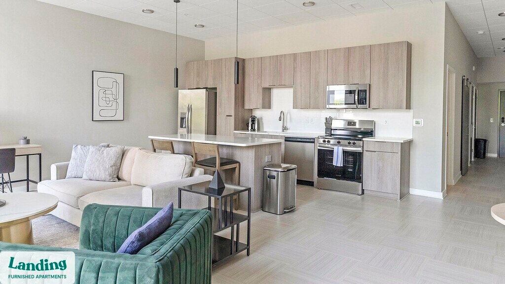 Landing offers flexible lease terms from weeks to months. Please always visit our website or contact us for the latest pricing & availability. Stay longer, save more: 6-Month Minimum base rent: starts at $2568/mo 12-Month Minimum base rent: starts at $2434/mo Landing offers flexible leases across a network of over 35,000 fully-furnished apartments throughout 375+ cities so you can rent on your terms, practically anywhere, and avoid the hassle of paying deposits or application fees. Visit to learn about all the benefits of a Landing membership, see our competitive up-to-date pricing, explore available apartments, take virtual tours, and make reservations online without jumping through traditional rental hoops. Landing's apartments at The 600 are designed for comfortable, easy living, with the ability to stay as long as you like. Experience living with Landing Every apartment is outfitted with all the modern essentials including: custom-designed furnishings, a fully-equipped kitchen with deluxe stainless steel appliances, a gourmet coffee maker, premium linens, Smart TVs, and incredibly fast, reliable internet for working from home. When you live with Landing, you'll enjoy a hassle-free experience with the added benefit of 24/7 access to our dedicated member experience team. Some of the nitty-gritty: a background check and proof of income are required; we're completely smoke-free; bundled utility packages and pricing vary based on length of stay; pet-friendly options available; listed price reflects a 12-month minimum stay.