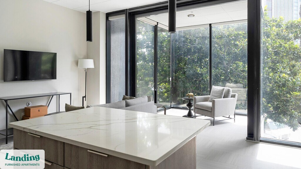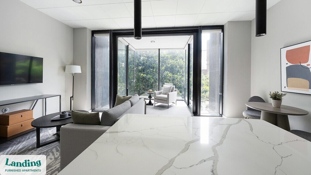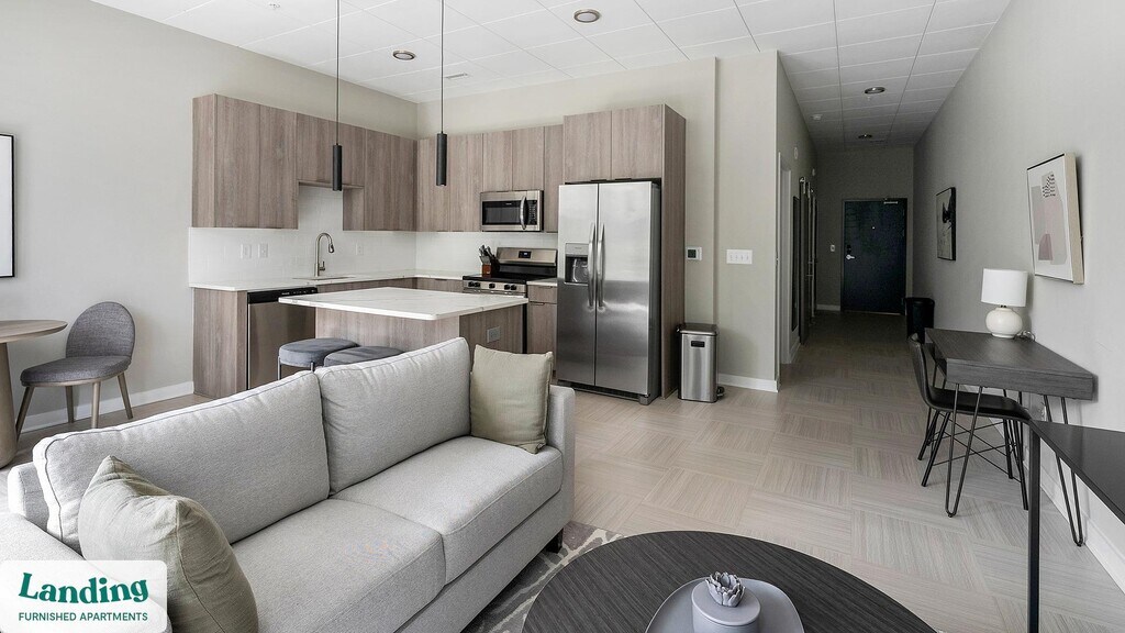 Landing offers flexible lease terms from weeks to months. Please always visit our website or contact us for the latest pricing & availability. Stay longer, save more: 6-Month Minimum base rent: starts at $2049/mo 12-Month Minimum base rent: starts at $2097/mo Landing offers flexible leases across a network of over 35,000 fully-furnished apartments throughout 375+ cities so you can rent on your terms, practically anywhere, and avoid the hassle of paying deposits or application fees. Visit to learn about all the benefits of a Landing membership, see our competitive up-to-date pricing, explore available apartments, take virtual tours, and make reservations online without jumping through traditional rental hoops. Landing's apartments at The 600 are designed for comfortable, easy living, with the ability to stay as long as you like. Experience living with Landing Every apartment is outfitted with all the modern essentials including: custom-designed furnishings, a fully-equipped kitchen with deluxe stainless steel appliances, a gourmet coffee maker, premium linens, Smart TVs, and incredibly fast, reliable internet for working from home. When you live with Landing, you'll enjoy a hassle-free experience with the added benefit of 24/7 access to our dedicated member experience team. Some of the nitty-gritty: a background check and proof of income are required; we're completely smoke-free; bundled utility packages and pricing vary based on length of stay; pet-friendly options available; listed price reflects a 12-month minimum stay.