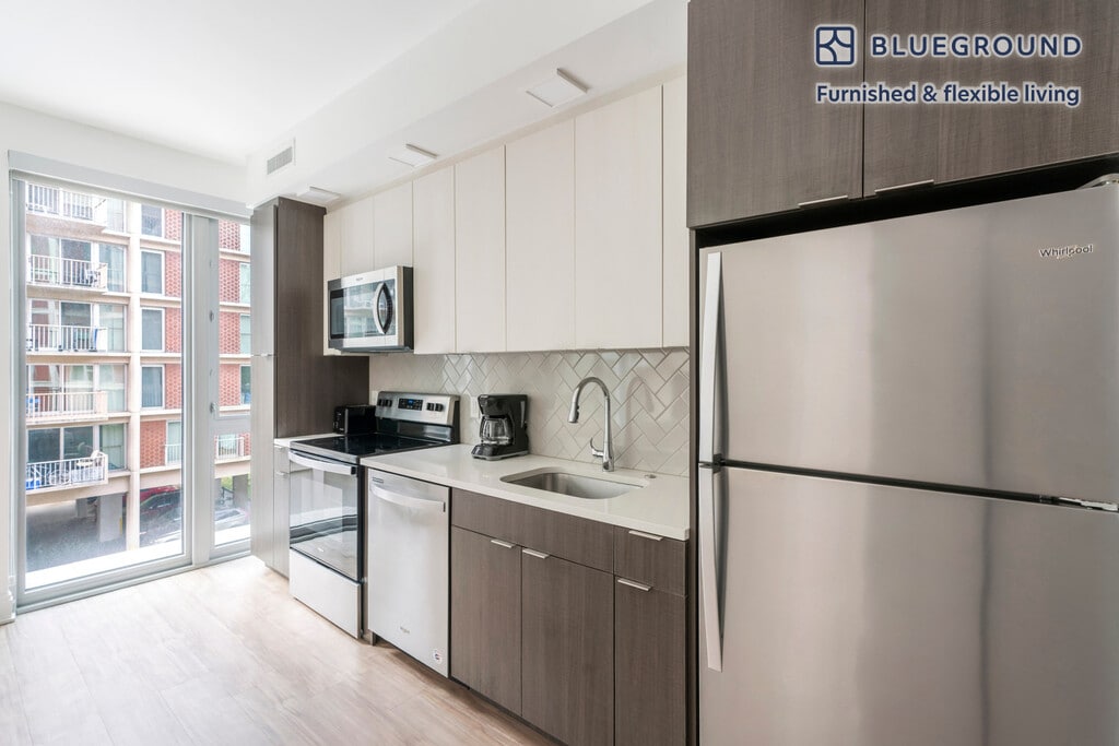 Discover the best of Washington, D.C., with this one bedroom apartment in Southwest Waterfront. It’ll be easy to simply show up and start living in this furnished apartment with its fully equipped kitchen, living room, and our dedicated, on-the-ground support. (ID #WDC1124) The advertised rate of $1,990/month is the lowest available price, based on a 1 month(s) and 17 day(s) stay with a move-in date of December 7, 2025. If you’re looking for a 1-year stay, the rate is $3,160/month. Rates vary depending on the duration of stay, season, and other parameters. For exact pricing and additional pricing components, please visit our website and enter your desired move-in and move-out dates. The rate is applicable when billed upfront; it can be higher if billed in multiple payments. Brokers are welcome to reach out. Were you looking for an unfurnished lease? Try Blueground instead and upgrade from unfurnished to furnished living: - Furnished at rates comparable to unfurnished - No setup or furniture costs - save thousands - Move-in ready - save time, just bring your suitcase Designed with you in mind Thoughtfully designed with bespoke finishes, modern furnishings, and a fully equipped kitchen, you’ll enjoy that “I’m home” feeling with this Blueground apartment. Whether you’re lounging in your beautiful living room streaming the latest and greatest entertainment on the smart TV or premium wireless speaker, or getting some well-earned rest on the superior quality mattress with luxury linens, you’ll fall in love with everything this Southwest Waterfront apartment has to offer. This apartment also offers in-apartment laundry. Sleeping arrangements Queen Bed, 63in/160cm Amenities Building amenities unique to this one bedroom apartment include an on-site: - Dryer - Elevator - Game room - Swimming pool - Washing machine - Library - Parking - Pets allowed Arrival and ongoing support The entire apartment is yours to enjoy! Throughout your stay, you’ll have access to our Client Experience team through the Blueground App. You can schedule additional cleanings, submit maintenance requests, and view our neighborhood recommendations with just a few taps. We’ll share all details upon confirmation of your stay. Other things to note Building amenities may have an extra cost. This Blueground apartment has flexible lease options, allowing you to book it for one month, a year, or more. Pets are welcome, though weight limits and breed restrictions apply and may incur fees. Parking is offered based on availability and is subject to a fee. We take great pride in ensuring every photo displayed is shot in our own units with our actual furnishings. That said, we regularly refresh our decor and furniture arrangement, which may differ from what’s pictured. [SI]