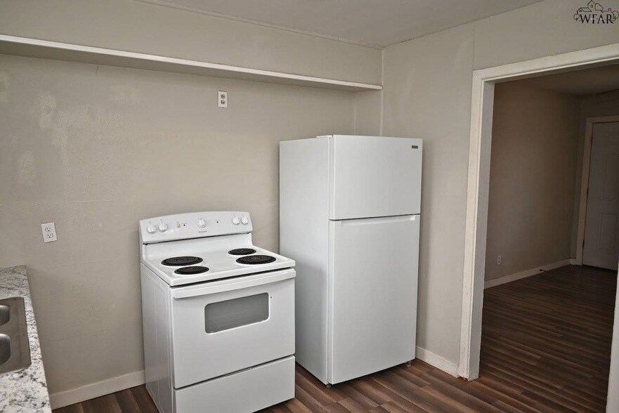 Affordable 2 bed 1 bath duplex in Burkburnett! This property boasts a separate driveway, front porch, and separate fenced in yard. Inside, you will find vinyl plank flooring, window units and a gas wall heater, and a kitchen equipped with a stove, refrigerator, and plenty of cabinetry. Deposit is the same price as rent. Pets allowed on a case-by-case basis with a $250 fee per pet. Apply today at