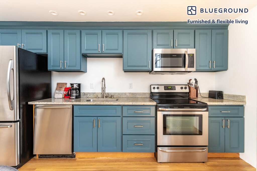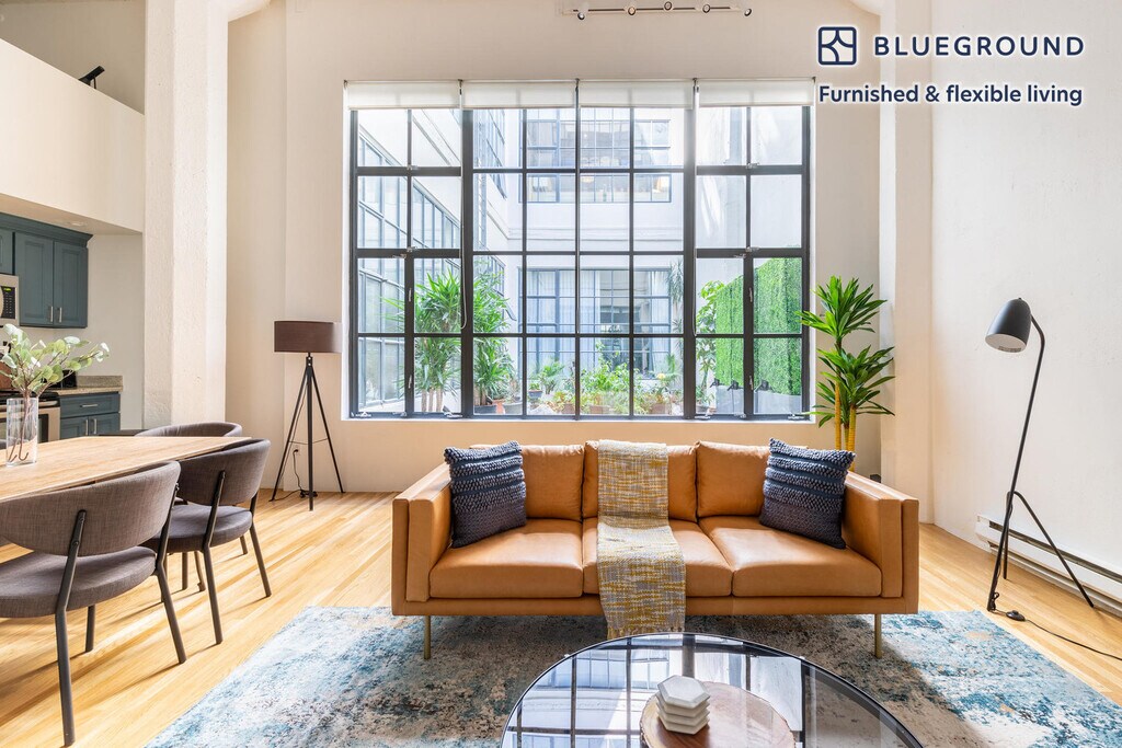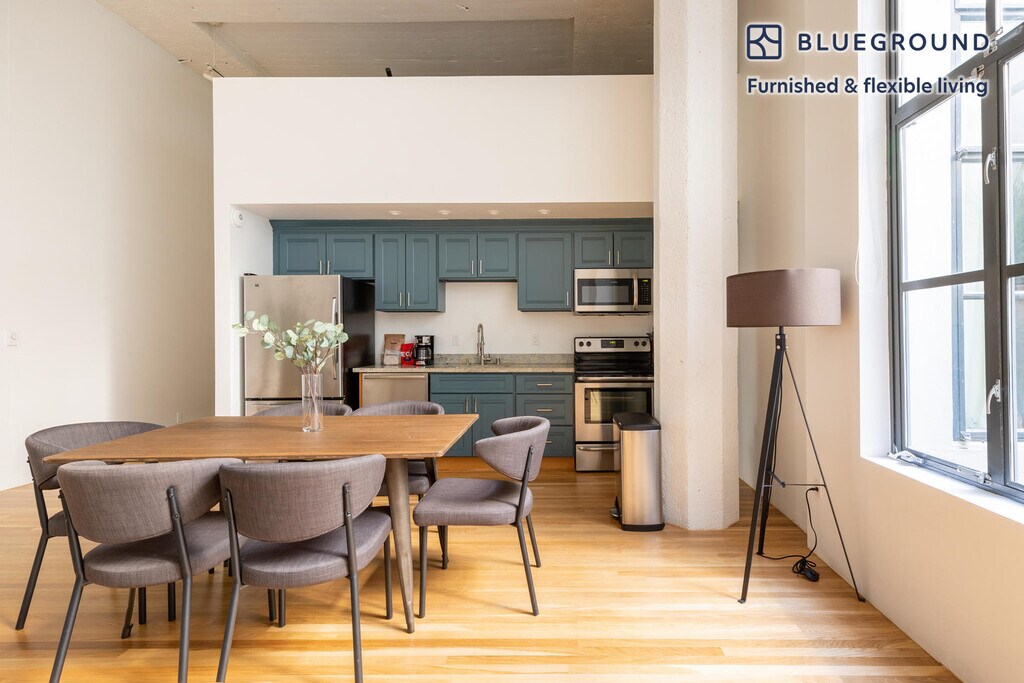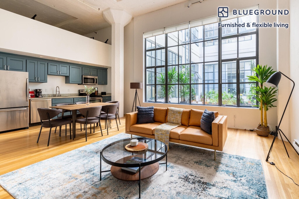 Feel at home wherever you choose to live with Blueground. You’ll love this charming China Basin furnished one bedroom loft with its modern decor, fully equipped kitchen, and beautiful living room. Ideally located, you’re close to all the best that San Francisco has to offer! (ID #SFO1523) The advertised rate of $5,550/month is the lowest available price, based on a 12 month(s) stay with a move-in date of April 17, 2026. Rates vary depending on the duration of stay, season, and other parameters. For exact pricing and additional pricing components, please visit our website and enter your desired move-in and move-out dates. The rate is applicable when billed upfront; it can be higher if billed in multiple payments. Brokers are welcome to reach out. Were you looking for an unfurnished lease? Try Blueground instead and upgrade from unfurnished to furnished living: - Furnished at rates comparable to unfurnished - No setup or furniture costs - save thousands - Move-in ready - save time, just bring your suitcase Designed with you in mind As with any Blueground loft, you’ll find a thoughtfully designed space complete with beautiful furniture and a fully equipped kitchen in this one bedroom property. And, thanks to our superior quality mattresses, luxury linens, and towels, you can relax knowing you’ll always feel comfortably at home. When you’re ready for some fun, you can take in the San Francisco vibes or bring the entertainment to you with the premium wireless speaker or smart TV. This loft also offers in-loft laundry. Sleeping arrangements King Bed, 70.8in/180cm Amenities Building amenities unique to this one bedroom loft include an on-site: - Dryer - Washing machine - Pets allowed Arrival and ongoing support The entire loft is yours to enjoy! Throughout your stay, you’ll have access to our Client Experience team through the Blueground App. You can schedule additional cleanings, submit maintenance requests, and view our neighborhood recommendations with just a few taps. We’ll share all details upon confirmation of your stay. Other things to note This Blueground loft has flexible lease options, allowing you to book it for one month, a year, or more. Pets are welcome, though weight limits and breed restrictions apply and may incur fees. Please keep in mind that this is a walk up building. We take great pride in ensuring every photo displayed is shot in our own units with our actual furnishings. That said, we regularly refresh our decor and furniture arrangement, which may differ from what’s pictured. Also note - There are stairs leading up to the entrance of this apartment, but no elevator