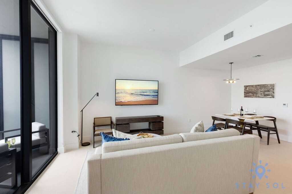 Welcome to your chic downtown retreat where you can feel at home! This stylish 1-bedroom apartment offers a blend of comfort and convenience in the heart of the city. This modern apartment is designed for both comfort and convenience. The bedroom boasts a plush king-size bed and a TV. The living room includes a sofa bed, perfect for extra guests. Enjoy the convenience of a full kitchen, ideal for preparing meals, and a full bathroom with all the essentials. Additional amenities include a washer and dryer inside the unit. Enjoy the amazing pool and a well-equipped gym. A free pack n play is available upon request. Pets are welcome with a fee of $100 per dog, with a 30 lbs restriction (doesn’t apply to ESA). Parking is not included. Downtown Miami is a vibrant urban area known for its dynamic cultural scene, modern architecture, and bustling nightlife. It’s a hub of business and entertainment, featuring attractions like the Miami Art Museum, Bayfront Park, and the American Airlines Arena. Getting around Downtown Miami is convenient with several options, including the Miami Metromover, Metrobus and Metrorail services, taxis, rideshares like Uber and Lyft, and bike rentals. Swimming is at your own risk and there is no lifeguard on duty. Children must be supervised by a responsible adult at all times. For your safety, no diving and no running. The property management is not liable for any accidents, injuries, or losses that may occur while using the pool or surrounding areas. Please keep all doors closed and the air conditioning on at all times to help prevent condensation and property damage. There may be an increase in daytime noise levels due to nearby construction. [SI]