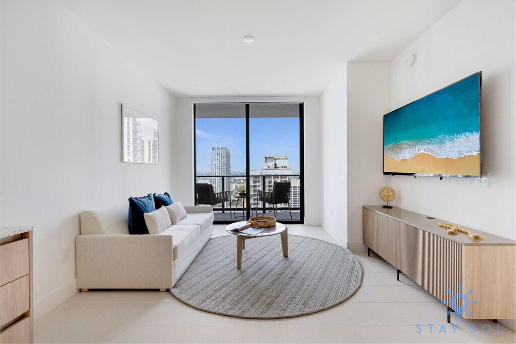 Feel at home in this chic downtown retreat! This stylish 1-bedroom apartment features a private balcony with stunning city views. This modern 1-bedroom apartment is designed for both comfort and convenience. The bedroom boasts a plush king-size bed and a TV. The living room includes a sofa bed, perfect for extra guests. Enjoy the convenience of a full kitchen, ideal for preparing meals, and a full bathroom with all the essentials. Additional amenities include a washer and dryer inside the unit, an amazing pool, a well-equipped gym, and complimentary Wi-Fi. A free pack n play is available upon request. This is a pet-friendly property with a 30 lbs restriction (doesn’t apply to ESA). A pet fee of $100 per dog applies. Parking is not included. Downtown Miami is a vibrant urban area known for its dynamic cultural scene, modern architecture, and bustling nightlife. It’s a hub of business and entertainment, featuring attractions like the Miami Art Museum, Bayfront Park, and the American Airlines Arena. The neighborhood is characterized by its sleek skyscrapers, upscale dining, and diverse events, making it a central spot for both locals and tourists. Getting around Downtown Miami is convenient with several options, including the Miami Metromover, Metrobus, Metrorail services, taxis, rideshares like Uber and Lyft, and bike rentals. There may be an increase in daytime noise levels due to nearby construction. Swimming is at your own risk, there is no lifeguard on duty, and children must be supervised by a responsible adult at all times. No diving or running is permitted. Please keep all doors closed and the air conditioning on at all times to help prevent condensation and property damage. [SI]