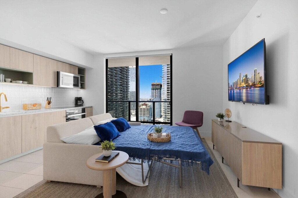 The advertised rate of $5,638/month is the lowest available price, based on a 30 day(s) stay with a move-in date of August 19, 2026. Rates vary depending on the duration of stay, season, and other parameters. For exact pricing and additional pricing components, please visit our website and enter your desired move-in and move-out dates. The rate is applicable when billed upfront; it can be higher if billed in multiple payments. Welcome to your chic downtown retreat! Feel at home in this stylish 2-bedroom apartment. This modern apartment is designed for both comfort and convenience. It features a full kitchen, ideal for preparing meals, and a full bathroom with all the essentials. Additional amenities include a washer and dryer inside the unit. Enjoy the amazing pool and well-equipped gym. Stay connected with complimentary Wi-Fi. Enjoy the convenience of receiving packages during your stay for $5 per package per day. Families can enjoy added convenience with a complimentary pack 'n play provided upon request. Parking is not included; however, guests have the freedom to choose the option that best fits their needs. This is a pet-friendly property with a 30 lbs restriction (doesn’t apply to ESA). The pet fee is $100 per dog. Downtown Miami is a vibrant urban area known for its dynamic cultural scene, modern architecture, and bustling nightlife. It’s a hub of business and entertainment, featuring attractions like the Miami Art Museum, Bayfront Park, and the American Airlines Arena. Getting around Downtown Miami is convenient with several options, including the Miami Metromover, Metrobus, Metrorail, taxis, rideshares, and bike rentals. Walking is feasible in many parts due to the area's compact layout and pedestrian-friendly streets. There may be an increase in daytime noise levels due to nearby construction. Swimming is at your own risk, and there is no lifeguard on duty. Children must be supervised by a responsible adult at all times. Please keep all doors closed and the air conditioning on at all times to help prevent condensation and property damage. [SI]