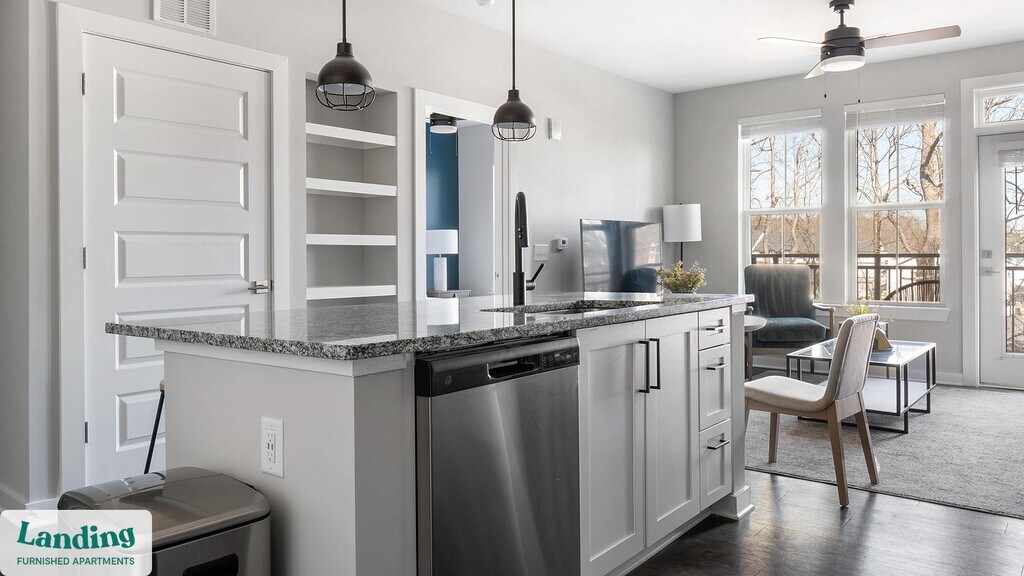 Landing offers flexible lease terms from weeks to months. Please always visit our website or contact us for the latest pricing & availability. Stay longer, save more: 6-Month Minimum base rent: starts at $2045/mo 12-Month Minimum base rent: starts at $1840/mo Landing offers flexible leases across a network of over 35,000 fully-furnished apartments throughout 375+ cities so you can rent on your terms, practically anywhere, and avoid the hassle of paying deposits or application fees. Visit to learn about all the benefits of a Landing membership, see our competitive up-to-date pricing, explore available apartments, take virtual tours, and make reservations online without jumping through traditional rental hoops. Landing's apartments at Series at Riverview Landing are designed for comfortable, easy living, with the ability to stay as long as you like. Experience living with Landing Every apartment is outfitted with all the modern essentials including: custom-designed furnishings, a fully-equipped kitchen with deluxe stainless steel appliances, a gourmet coffee maker, premium linens, Smart TVs, and incredibly fast, reliable internet for working from home. When you live with Landing, you'll enjoy a hassle-free experience with the added benefit of 24/7 access to our dedicated member experience team. Some of the nitty-gritty: a background check and proof of income are required; we're completely smoke-free; bundled utility packages and pricing vary based on length of stay; pet-friendly options available; listed price reflects a 12-month minimum stay.