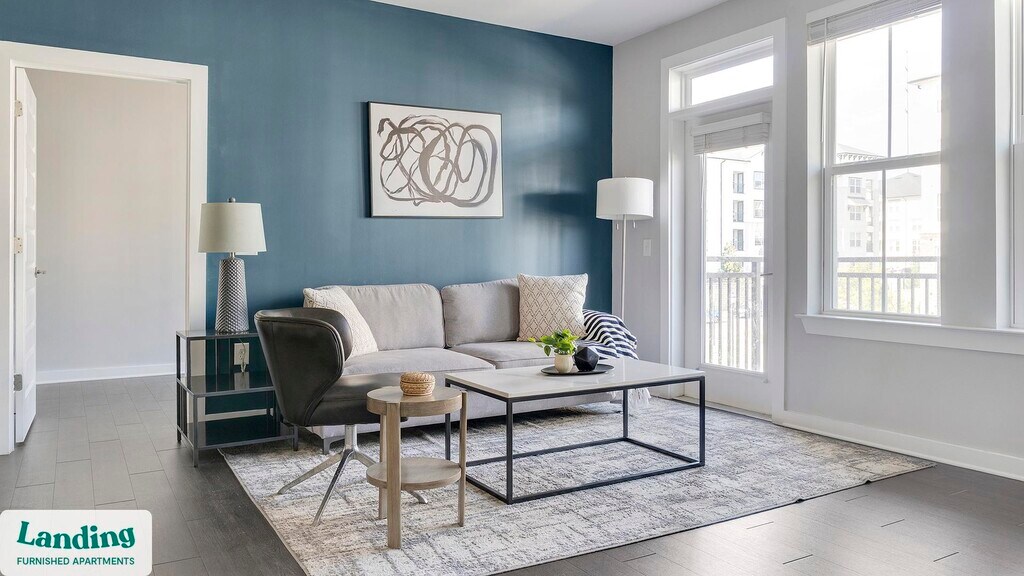 Landing offers flexible lease terms from weeks to months. Please always visit our website or contact us for the latest pricing & availability. Stay longer, save more: 6-Month Minimum base rent: starts at $2546/mo 12-Month Minimum base rent: starts at $2244/mo Landing offers flexible leases across a network of over 35,000 fully-furnished apartments throughout 375+ cities so you can rent on your terms, practically anywhere, and avoid the hassle of paying deposits or application fees. Visit to learn about all the benefits of a Landing membership, see our competitive up-to-date pricing, explore available apartments, take virtual tours, and make reservations online without jumping through traditional rental hoops. Landing's apartments at Series at Riverview Landing are designed for comfortable, easy living, with the ability to stay as long as you like. Experience living with Landing Every apartment is outfitted with all the modern essentials including: custom-designed furnishings, a fully-equipped kitchen with deluxe stainless steel appliances, a gourmet coffee maker, premium linens, Smart TVs, and incredibly fast, reliable internet for working from home. When you live with Landing, you'll enjoy a hassle-free experience with the added benefit of 24/7 access to our dedicated member experience team. Some of the nitty-gritty: a background check and proof of income are required; we're completely smoke-free; bundled utility packages and pricing vary based on length of stay; pet-friendly options available; listed price reflects a 12-month minimum stay.