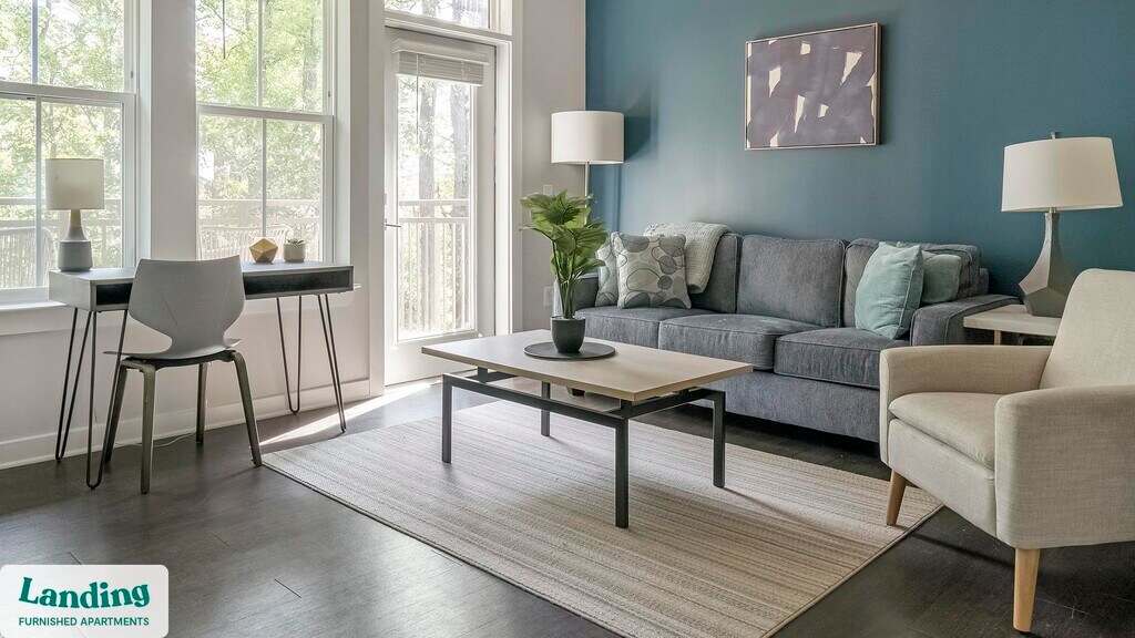 Landing offers flexible lease terms from weeks to months. Please always visit our website or contact us for the latest pricing & availability. Stay longer, save more: 6-Month Minimum base rent: starts at $2240/mo 12-Month Minimum base rent: starts at $1989/mo Landing offers flexible leases across a network of over 35,000 fully-furnished apartments throughout 375+ cities so you can rent on your terms, practically anywhere, and avoid the hassle of paying deposits or application fees. Visit to learn about all the benefits of a Landing membership, see our competitive up-to-date pricing, explore available apartments, take virtual tours, and make reservations online without jumping through traditional rental hoops. Landing's apartments at Series at Riverview Landing are designed for comfortable, easy living, with the ability to stay as long as you like. Experience living with Landing Every apartment is outfitted with all the modern essentials including: custom-designed furnishings, a fully-equipped kitchen with deluxe stainless steel appliances, a gourmet coffee maker, premium linens, Smart TVs, and incredibly fast, reliable internet for working from home. When you live with Landing, you'll enjoy a hassle-free experience with the added benefit of 24/7 access to our dedicated member experience team. Some of the nitty-gritty: a background check and proof of income are required; we're completely smoke-free; bundled utility packages and pricing vary based on length of stay; pet-friendly options available; listed price reflects a 12-month minimum stay.